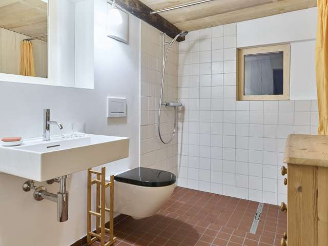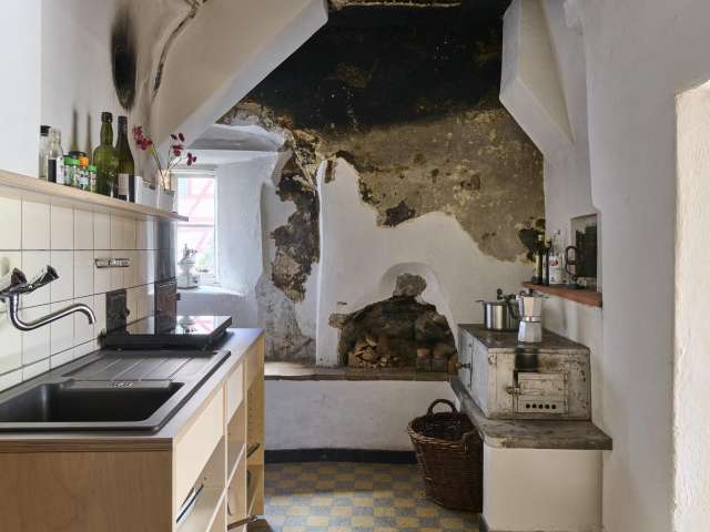 The medieval building offers space for up to four people and a small child in two spacious rooms.