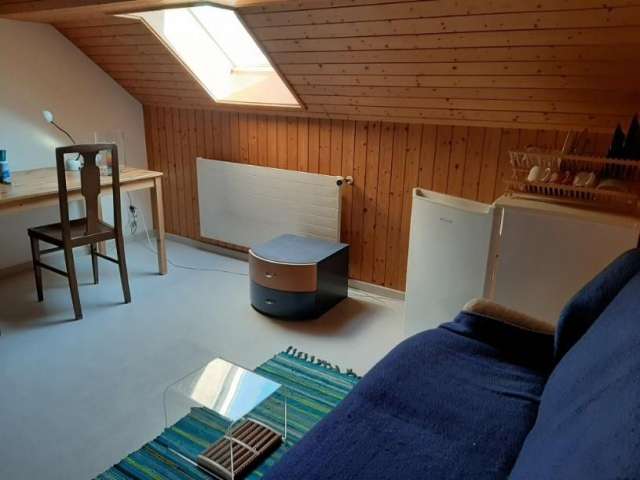 Two furnished rooms in a terraced middle house in a very quiet location. One double bed each in the attic and upper floor. Bathroom, WC and kitchenette with microwave and refrigerator. Within walking distance is the harbour Staad as well as the railway station and various shopping facilities.