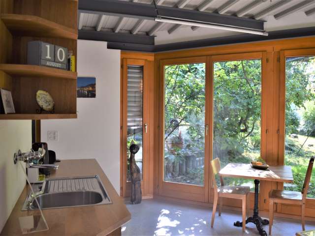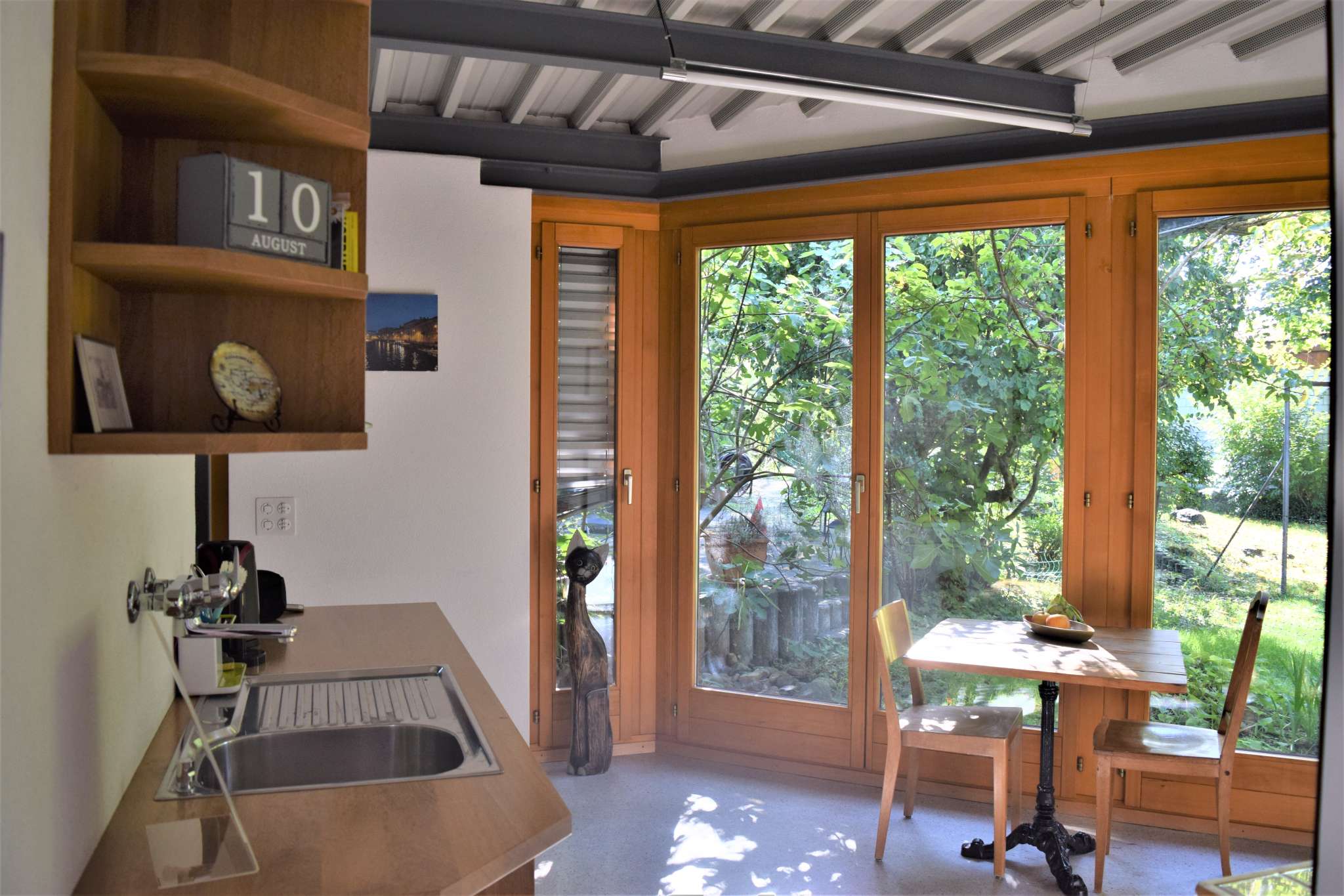 In the heart of the Thurgau, at the foot of the Ottenberg, lies Weinfelden. As the name suggests, wine is produced here – very good wine at that. The small town with its many timber-framed houses is small and sweet and a good starting point to all directions of the Thurgau. The Bed & Breakfast Rosenstrass offers two lovingly furnished rooms in a quiet, central location with a separate entrance where a small biotope with seating area greets you. The flat has a small kitchenette without cooker. Toilet and shower are shared. The village centre or the railway station are only 5 minutes away on foot. The Weinfelder Weinweg (wine trail) also starts here, where you can experience the region's viticulture and fine wines from a wine safe. Zurich airport can be reached by train in 40 minutes. Lake Constance or the German town of Konstanz can be reached in 20 minutes from Weinfelden.