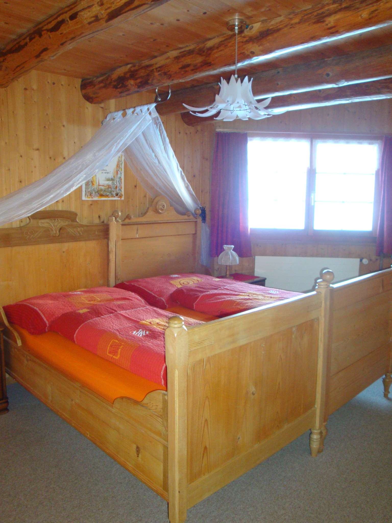 The apartment on the first floor is cozy and very rustically furnished. Wooden beams are visible on the walls and ceilings. The apartment has a veranda.