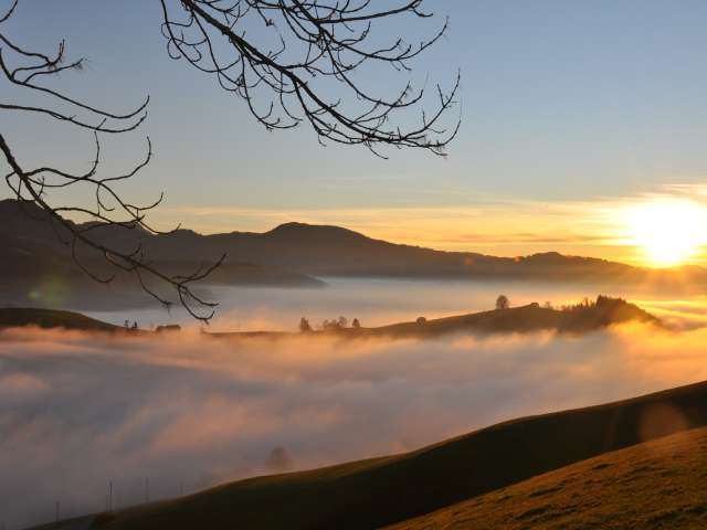 Relax and enjoy the sweeping views of beautiful Mount Säntis and the Alpstein from 1,100 metres above sea level. The hot tub is the perfect place for a romantic bath at sunset or a sociable splash with friends. The view is magnificent. And there is nothing between you and our Alpstein that could spoil it. Kronberg and Mount Säntis are just in front of you. In our rustic trailer right next to the hot tub we serve delicious regional food specialities.