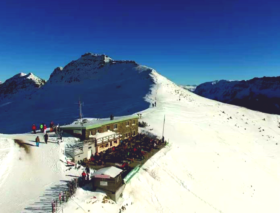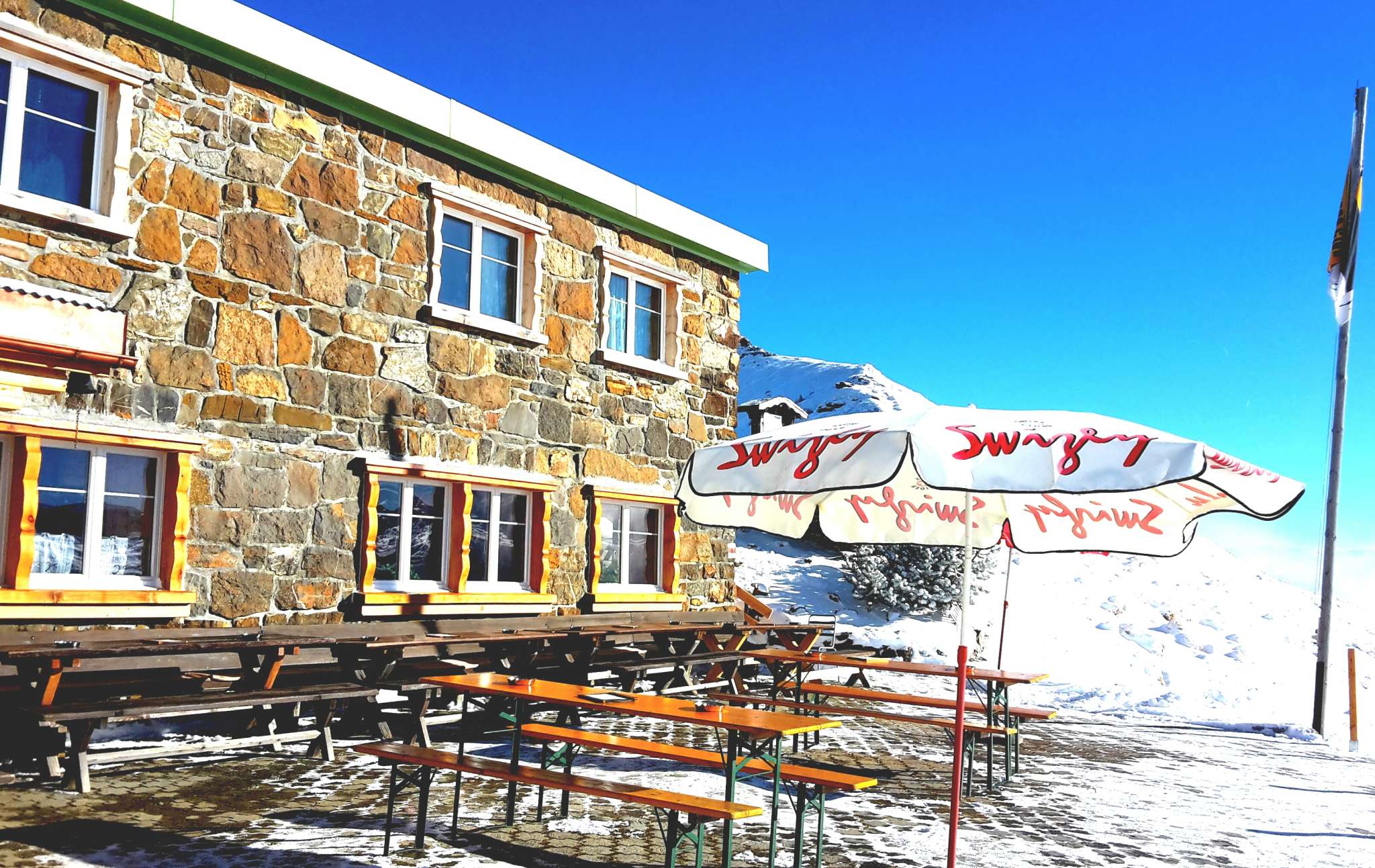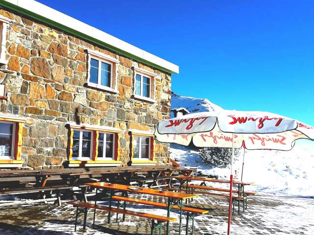 The mountain restaurant Maschgenlücke offers a large south-facing terrace with panoramic views and plenty of sunshine. In winter, visitors enjoy the view of snow-covered peaks, and in summer, of alpine meadows and marmots.