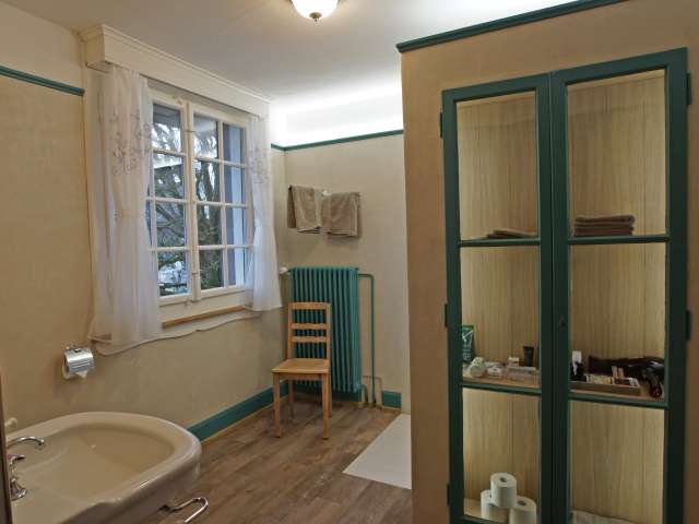 The charm of the listed villa is impressive: nostalgic furniture, art nouveau-style living rooms and antique tiles create the right ambience. The accommodation in Aadorf is designed for up to four people, a baby crib and crib are also available. A park for relaxing or exploring (child-friendly), a library and a pinball machine complete the offer. An exceptional breakfast ensures a good start to the day. The region can be discovered on foot or by bike. A visit to the surrounding towns and museums in the Winterthur-Frauenfeld-Wil triangle is also worthwhile. The Rhine Falls, Lake Constance or Toggenburg are also only 30 minutes away by car, 2 free parking spaces are available. The train station is only a 3-minute walk away, with good public transport connections to Zurich or St. Gallen.