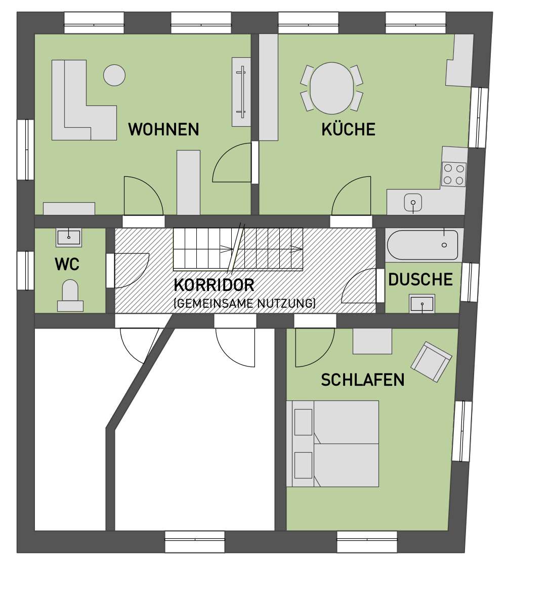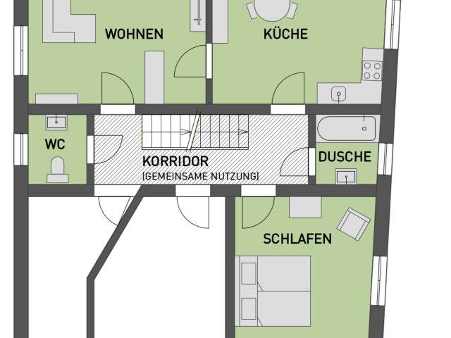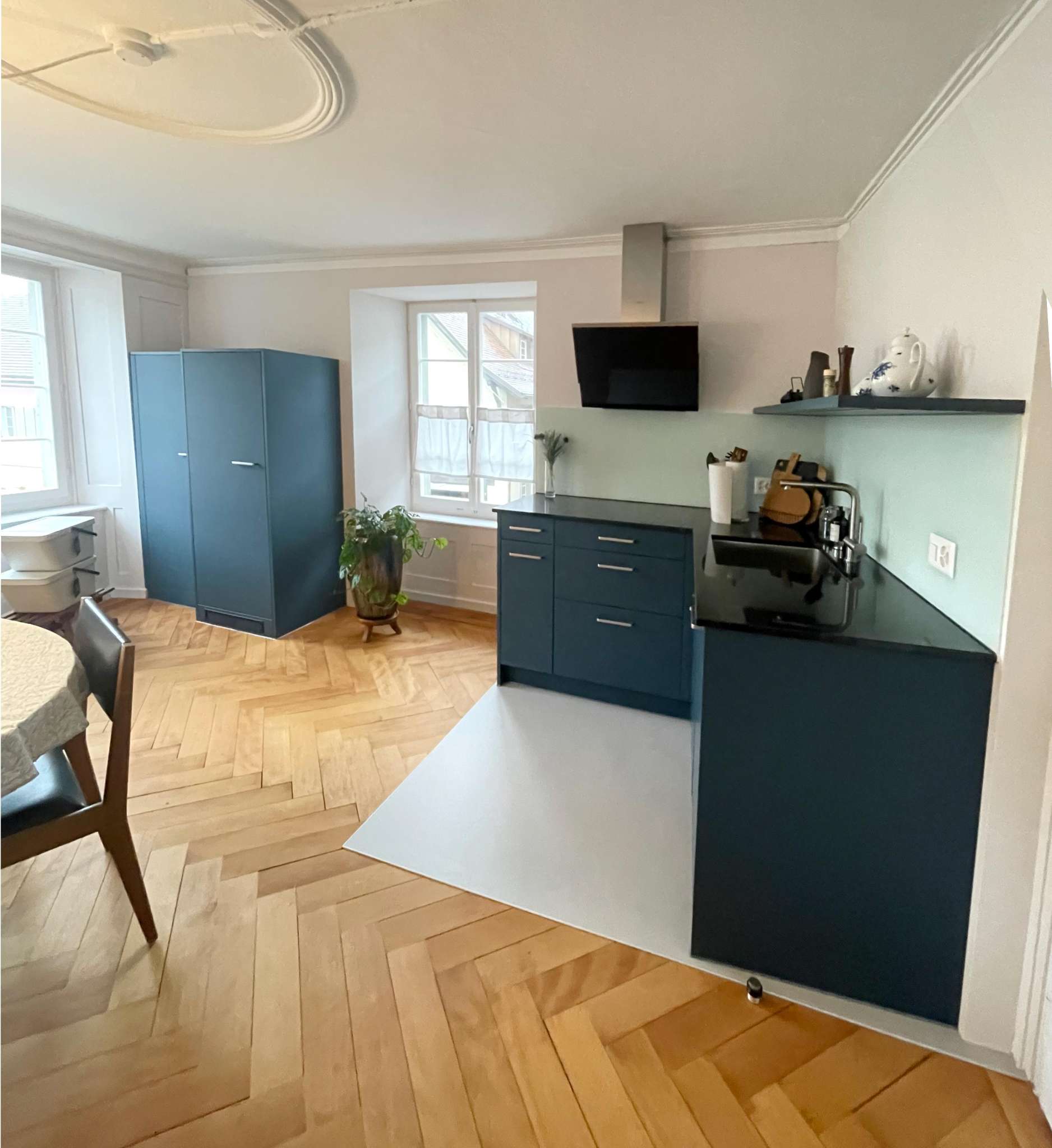 The 70m² flat is located on the first floor of the 500-year-old Weinberg building. You will revitalise the former innkeeper's flat with a view of the Rhine. We have remodelled and refurnished it for our guests. Everything for a pleasant stay is available.