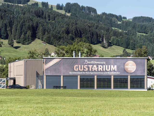 Breitenmoser Appenzeller Fleischspezialitäten AG is one of the leading meat processing companies with specialist stores in Appenzell, Gais, Teufen and Rorschacherberg. The traditional butcher's shop with unique Appenzeller specialties dates back to 1896, the year it was founded. Since May 2023, there has also been the diverse "Breitenmoser Gustarium" experience world, which offers interesting and entertaining things to do with meat and sausage. Parties and seminars can be held here by prior arrangement. You can also visit the exhibition spontaneously and enjoy a freshly sliced Appenzeller Plättli with a drink in the light-flooded butcher's parlor "meet & (m)eat". In the gourmet store, you can browse, be inspired by the recipe wall and take Appenzell specialties and delicacies home with you.