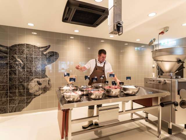 A place of diversity with an interactive exhibition "all about enjoyment" that is unique in Switzerland, barbecue and sausage seminars, a gourmet store and a restaurant area with a fireplace and bar and a view of the Alpstein.