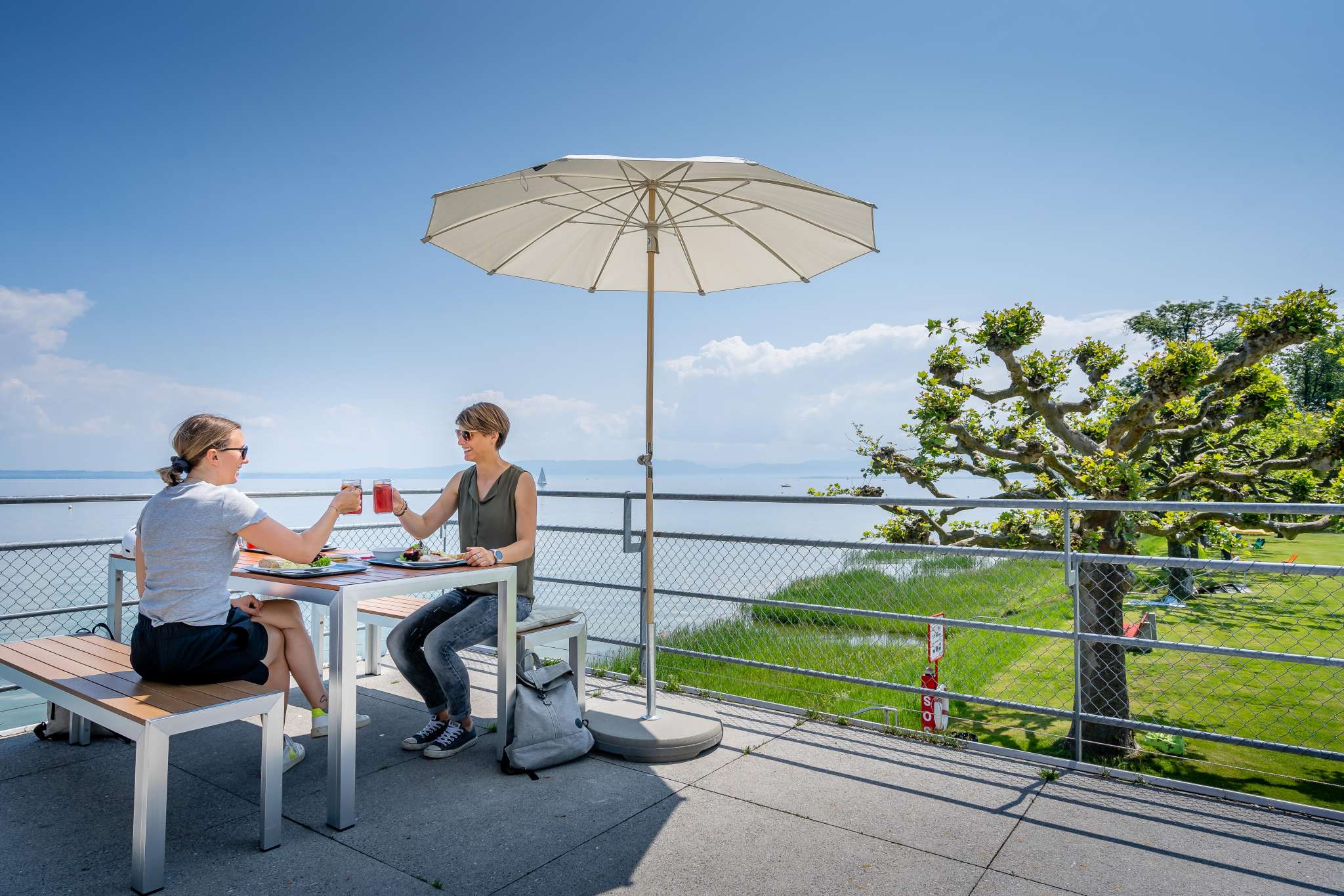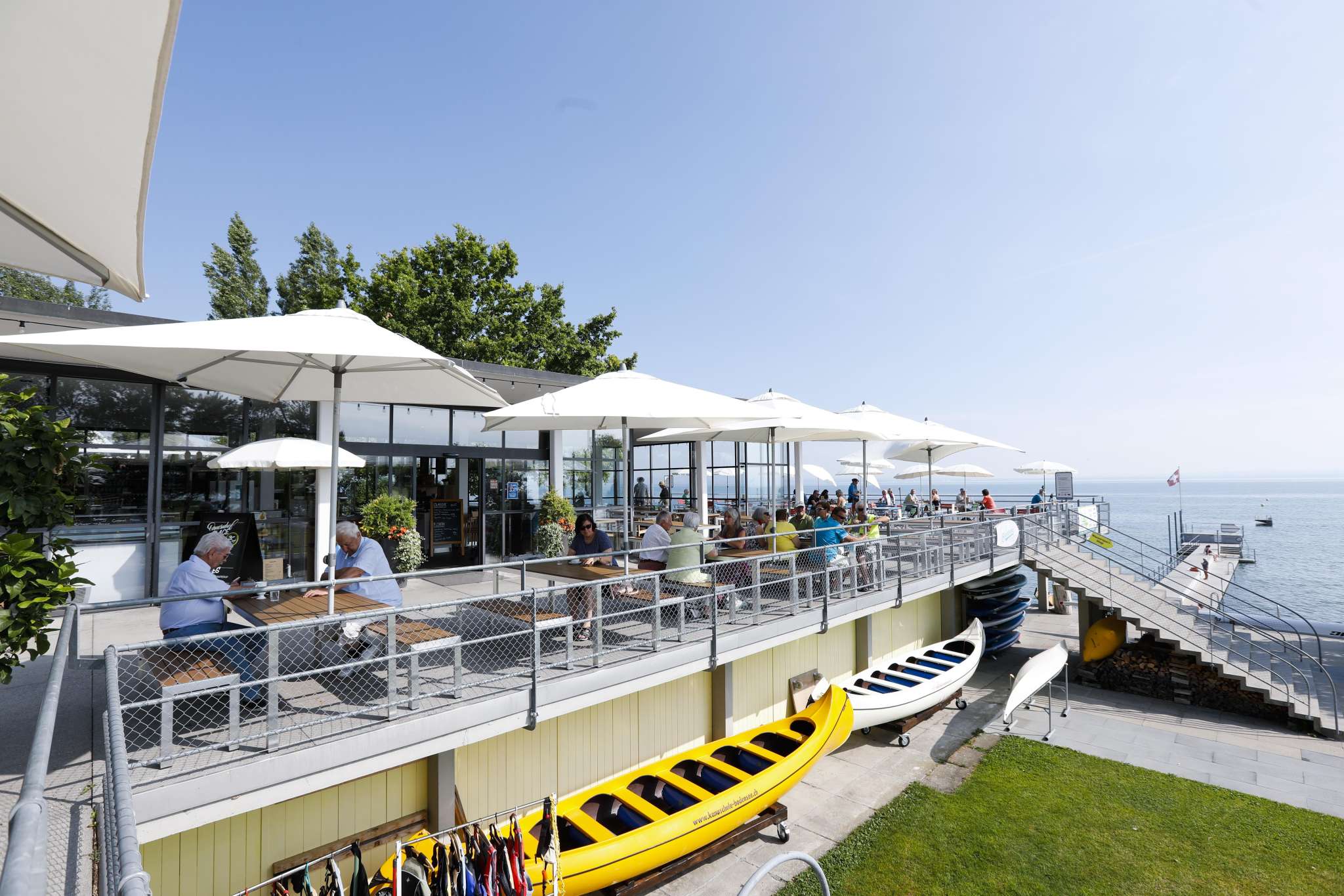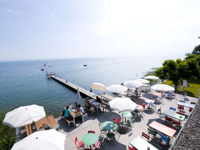 Situated directly on beautiful Lake Constance, the Buchhorn lake restaurant in Arbon is the perfect place to linger. You'll never want to leave the slightly elevated viewing platform on the terrace. This is pure summer feeling.
