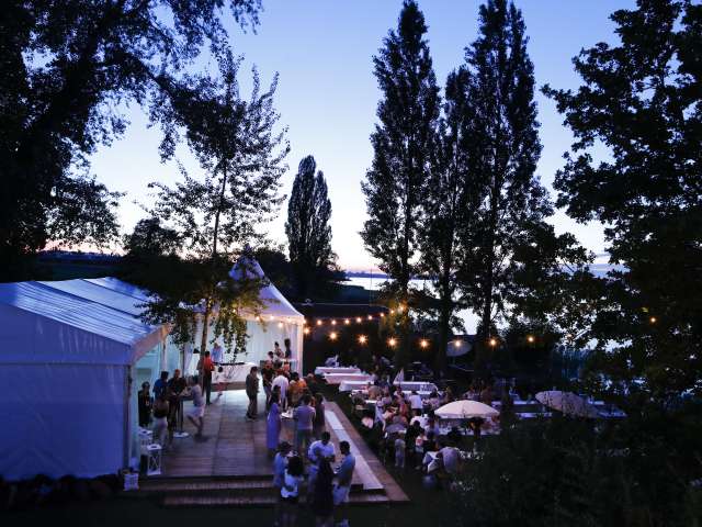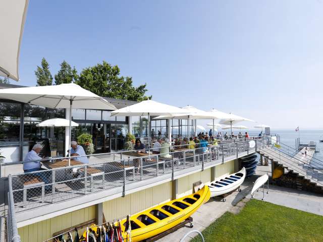 The Seerestaurant Buchhorn at Arbon lido is run with great dedication. In addition to the menu, the daily changing lunch menus provide variety on the dining table and nobody can resist the wide selection at the buffet. The restaurant's specialities include fine fish crispies in a spicy herb breading and the unmistakable Buchhorn burger. The Buchhorn restaurant in Arbon is also a refreshingly versatile venue for parties. In addition to daily operations, the Buchhorn lakeside restaurant is also the perfect stage for dignified, festive gatherings of all kinds. There are few places that are as ideal for a celebration as this unique jewel. Situated directly on the lake, it can be used in a variety of ways. The Seerestaurant Buchhorn is a great destination for excursions and is located on various cycling and hiking trails.