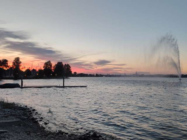 The Fischerhaus campsite in Kreuzlingen is located directly on Lake Constance. Spacious new sanitary facilities, a barbecue pavilion and the renaturalised stream flowing through the middle of the site are sure to delight campers. For guests without a tent or camper, there are affordable rooms and five colourful "fishermen's houses". The latter impress with their stylish, pragmatic furnishings for up to four people. A central playground and the proximity to Lake Constance and the Hörnli outdoor pool - admission included - also make holidays at Camping Fischerhaus a great family experience. The level site is barrier-free and easily accessible for pushchairs or visitors with disabilities. Kreuzlingen can be reached within twenty minutes on foot through a picturesque riverside park. This is the starting point for culture vultures and night owls.
