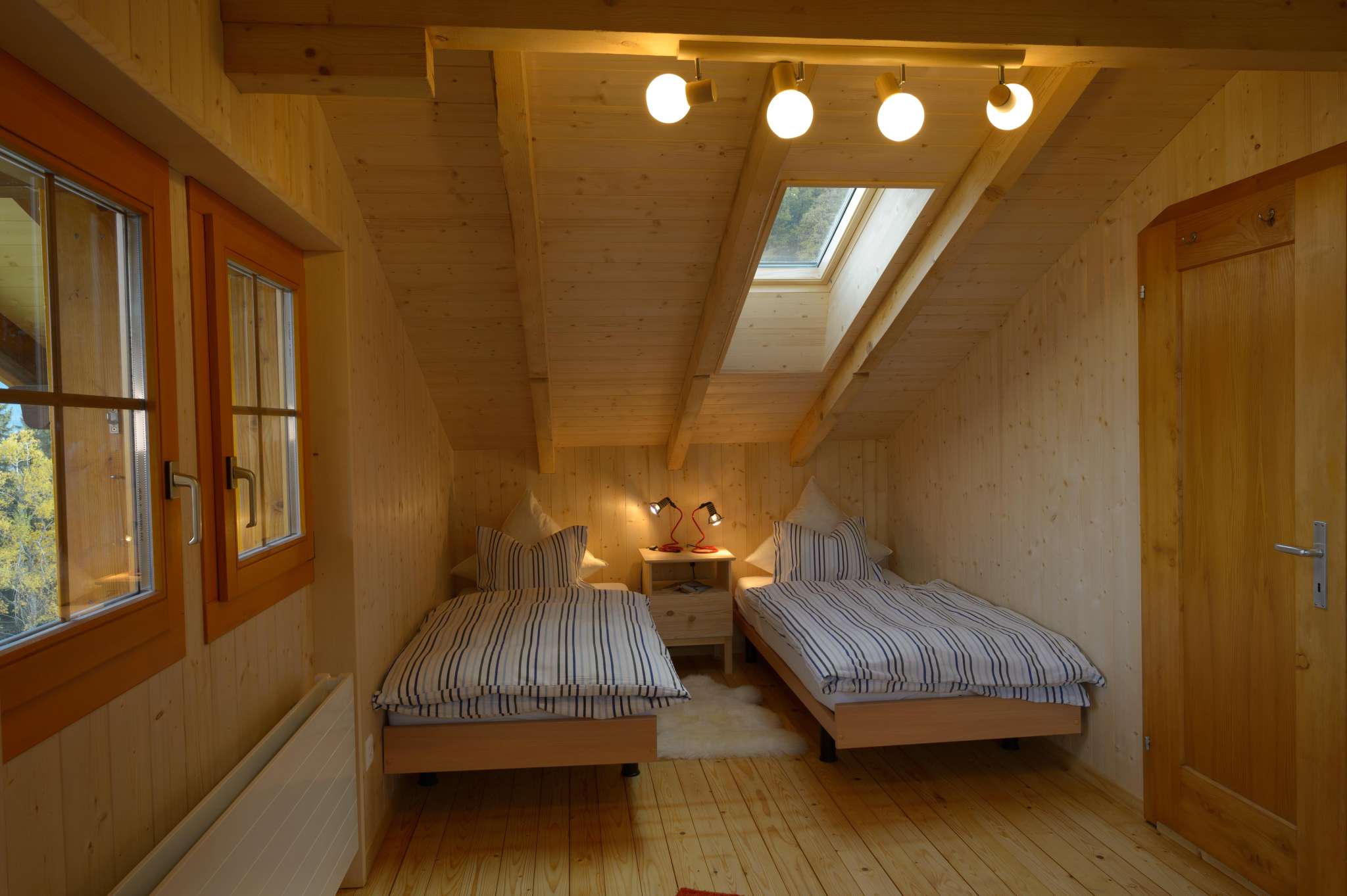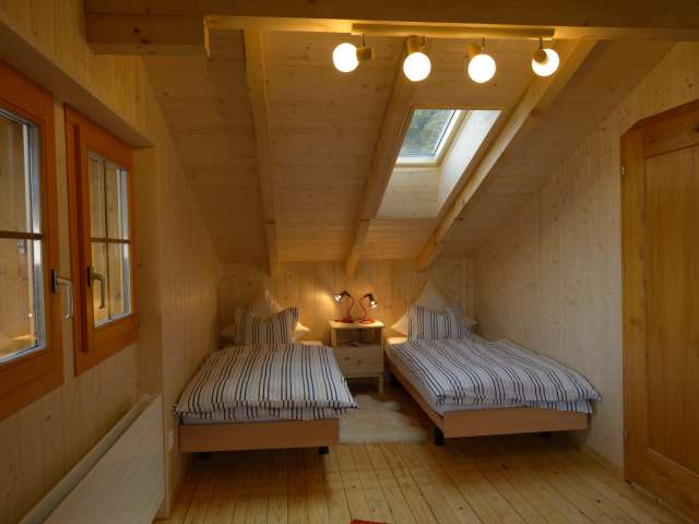 The apartment is very lovingly furnished with lots of wood. The living room has a Swedish stove, which makes the stay very comfortable. Living room and bedroom have a wooden floor. From the living room you have access to the sunny balcony.