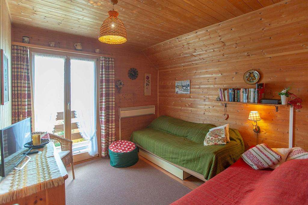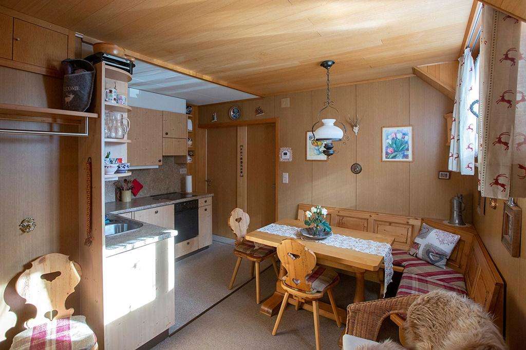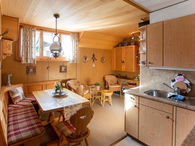 The charming 3.5 room apartment is located in the middle of nature. Directly at the winter hiking trail and next to the ski slope, respectively at the summer high trail and the biker trail. The apartment is ideal for 2-4 persons. The living space is 35m2. The chalet was built in 1970, but in recent years it has been renovated several times. Directly next to the chalet is the ski slope. Only about 2 minutes downhill to the Prodalp-Express. In summer the access is directly in front of the chalet and in winter the access is via fussweg of 300m over the Obere Anggetlinstrasse and the winter hiking trail.