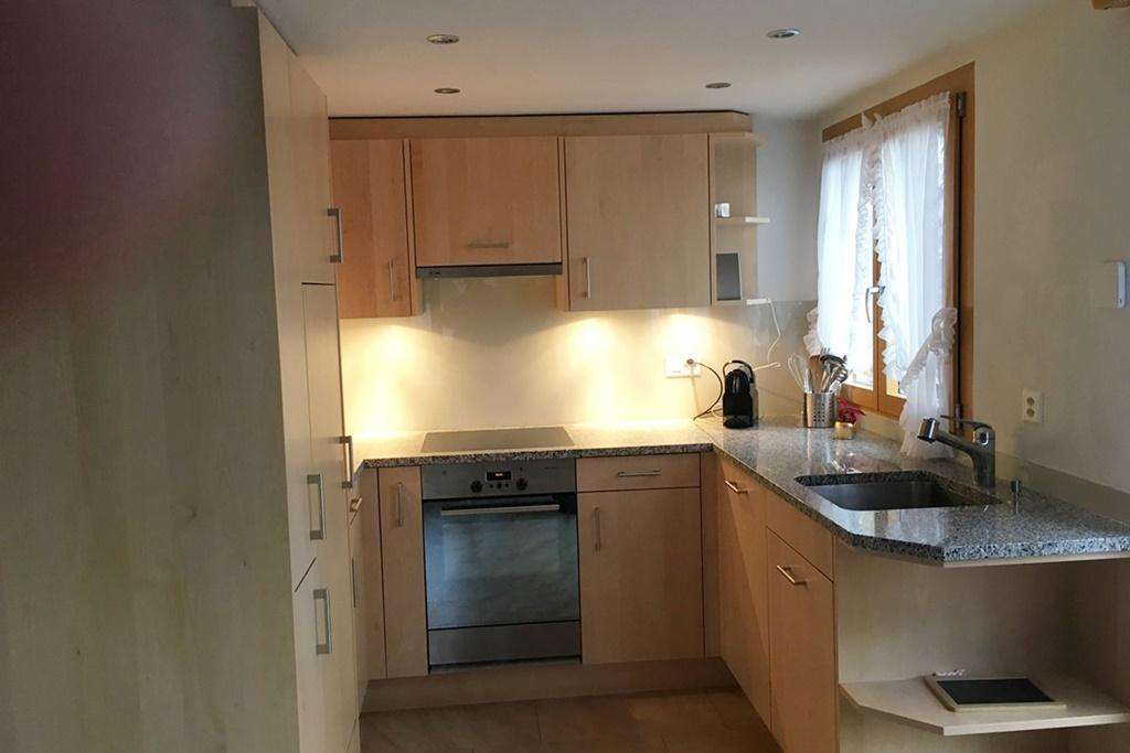The apartment is functionally equipped and furnished with lots of wood. The walls of the living room and bedrooms are paneled with wood and have a wooden floor. The chalet has an outside seating area with a beautiful view.