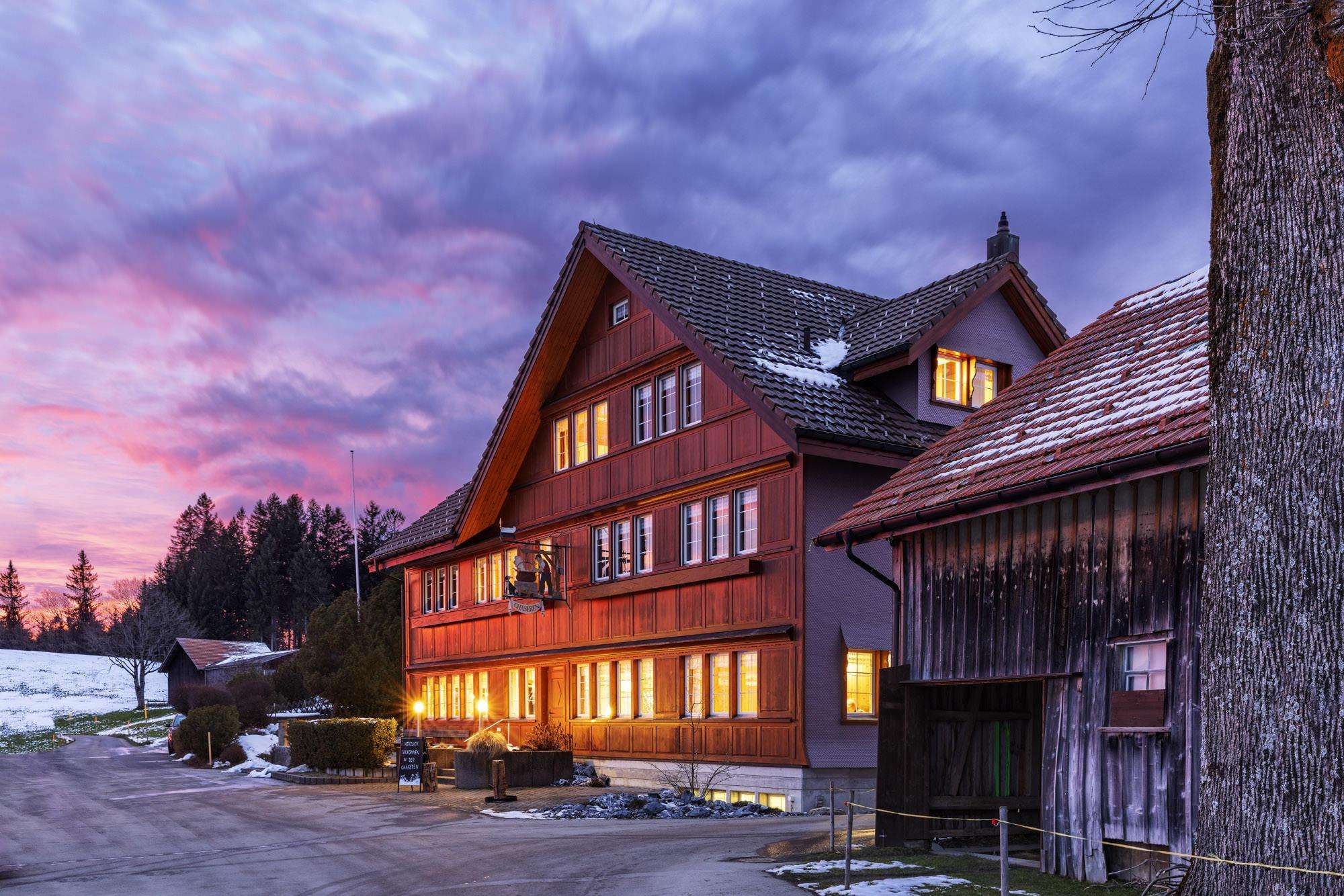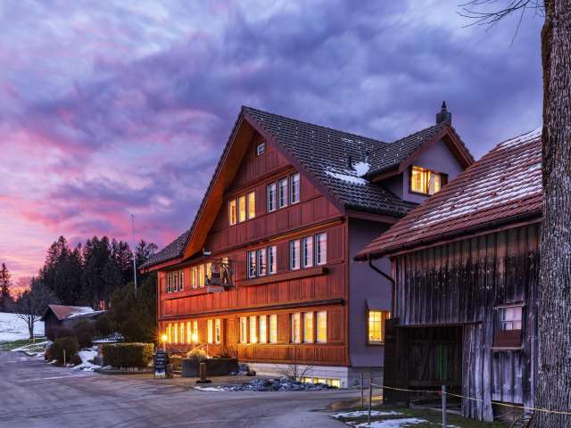 The Chäseren seminar hotel and restaurant is situated in a peaceful landscape, 20 kilometres from St. Gallen. It offers a wonderful view of the Alpstein massif with the Säntis. The restaurant serves Swiss and international cuisine as well as seasonal dishes.