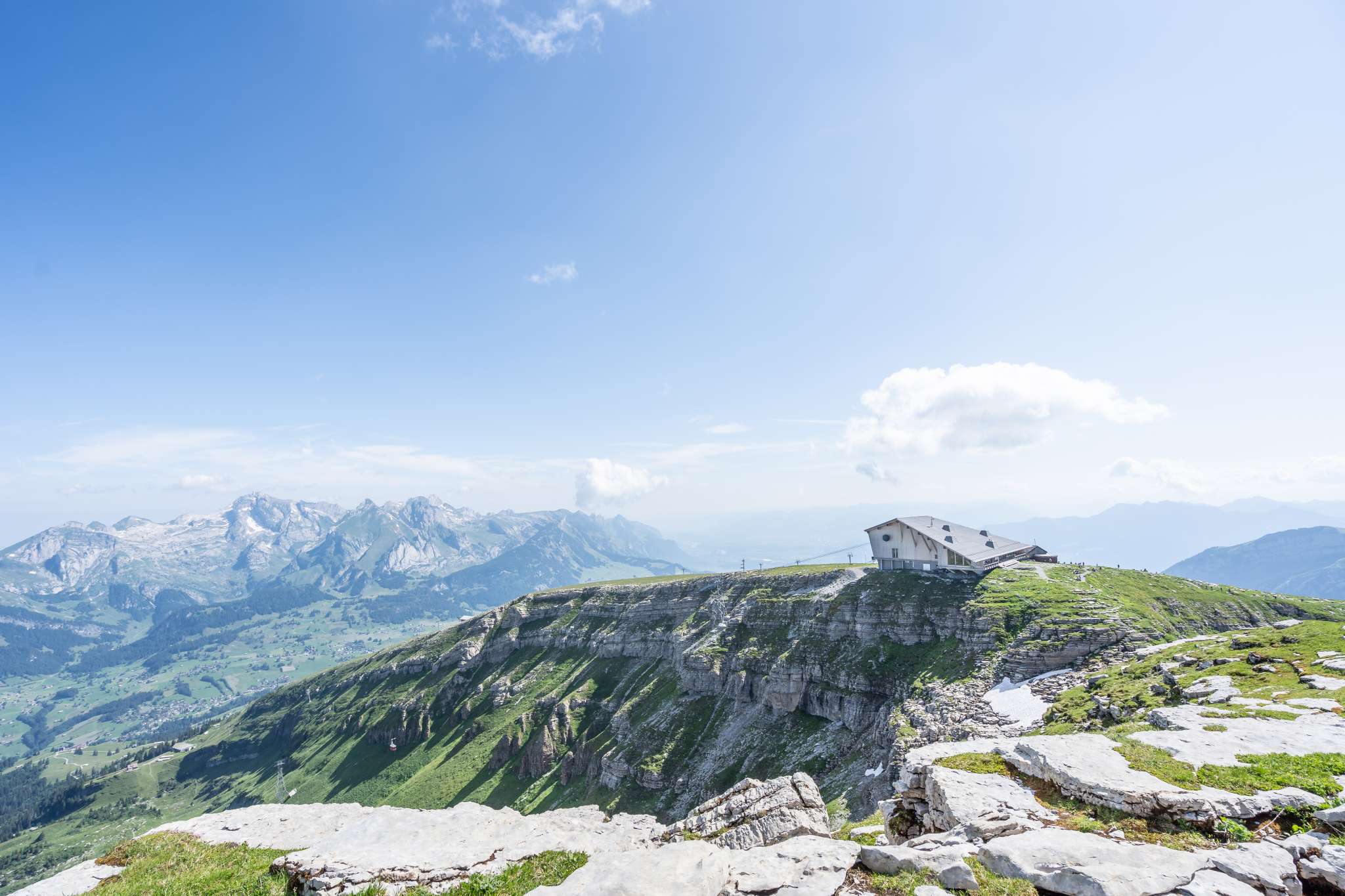 Reaching Chäserrugg is both comfortable and straightforward. From the village of Unterwasser, a funicular railway takes you to Iltios, followed by an aerial cable car that brings you directly to the summit. Both cableways are wheelchair accessible, as is the summit building itself.