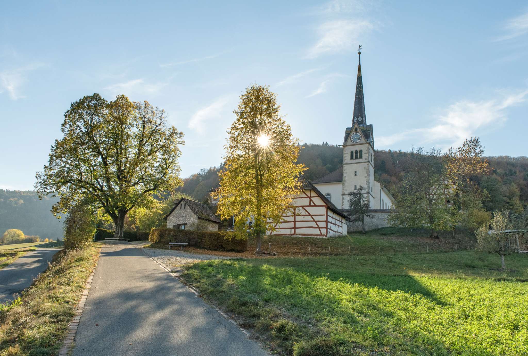 The church of St. Martin in Merishausen is characterized by its outstanding location above the village on the Heerenberg. The church with rectory and cemetery forms a separate building group. The picturesque ensemble, which dates back to the Middle Ages, joins the well-known Schaffhausen mountain churches of Büsingen, Neunkirch, Hallau and Wilchingen.