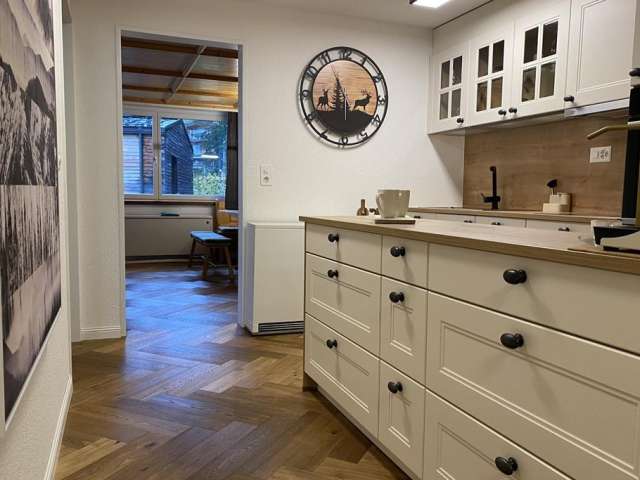 The modern and bright 4.5-room apartment is located in Flumserberg Tannenheim. The Mittenwald ski lift with direct access to the slopes and hiking trails is just a five-minute walk away. The Prodalp express valley station, with further ski slopes and hiking trails, as well as the center of Tannenheim with sports stores, restaurants and a post bus stop are just a 10-minute walk away. The apartment is in a quiet location with a unique view of the mountains. An outdoor parking space belongs to the apartment.