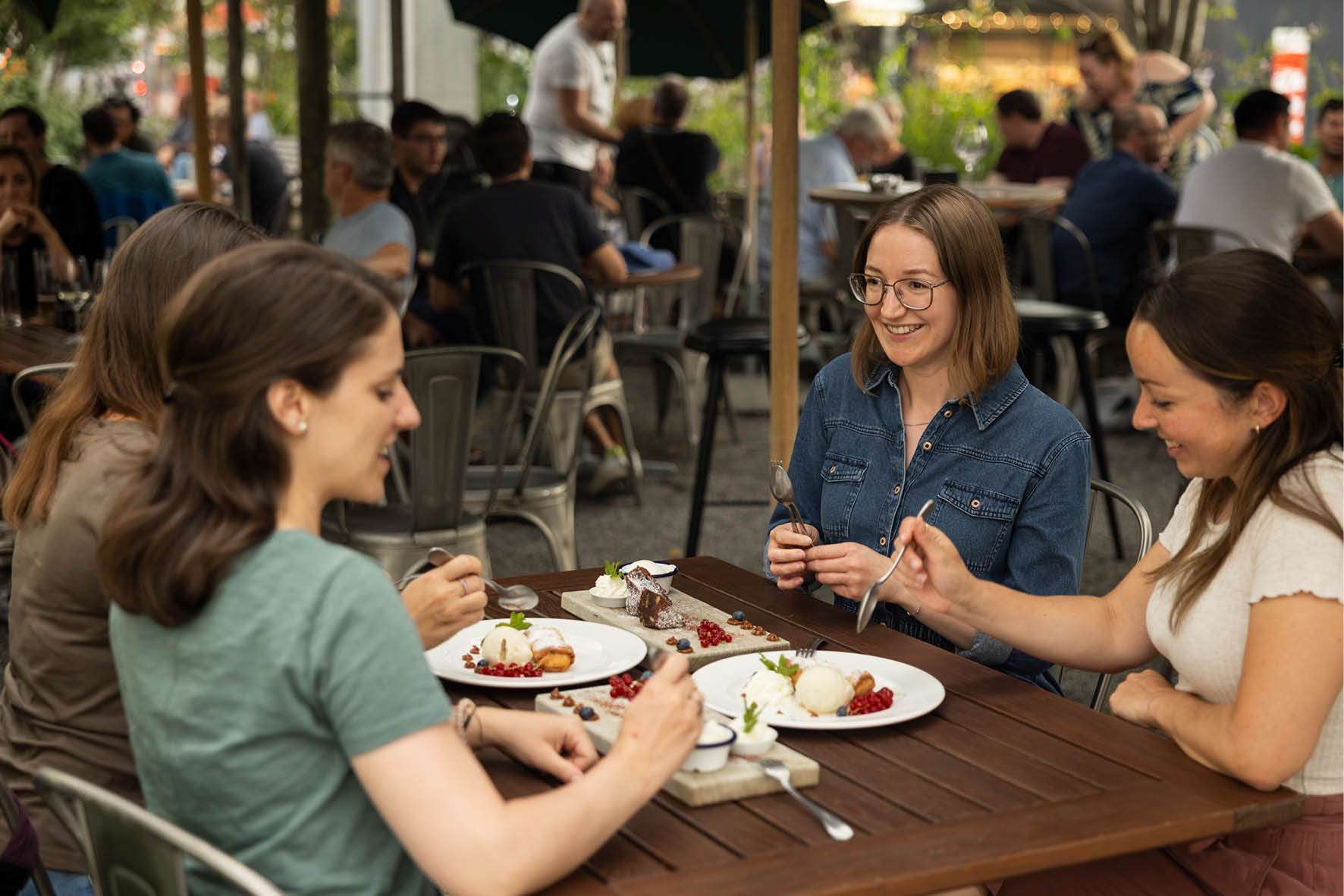 The first course is served in the Scheitlinsbüchel restaurant, which is located not far from Notkersegg Monastery. Enjoy not only a delicious starter, but also the fantastic view over the city. After a walk along the Three Weirs, which were artificially created in the 17th century, the Falkenburg restaurant will spoil you with the main course from the seasonal menu and a view of the lights of St.Gallen. Then it's back to the old town. The crowning finale awaits you at the Brauwerk restaurant. For dessert, enjoy one of the many craft beers brewed on site by the creative master brewers. En Guätä!