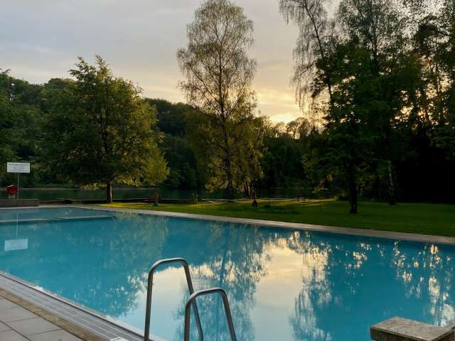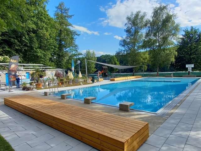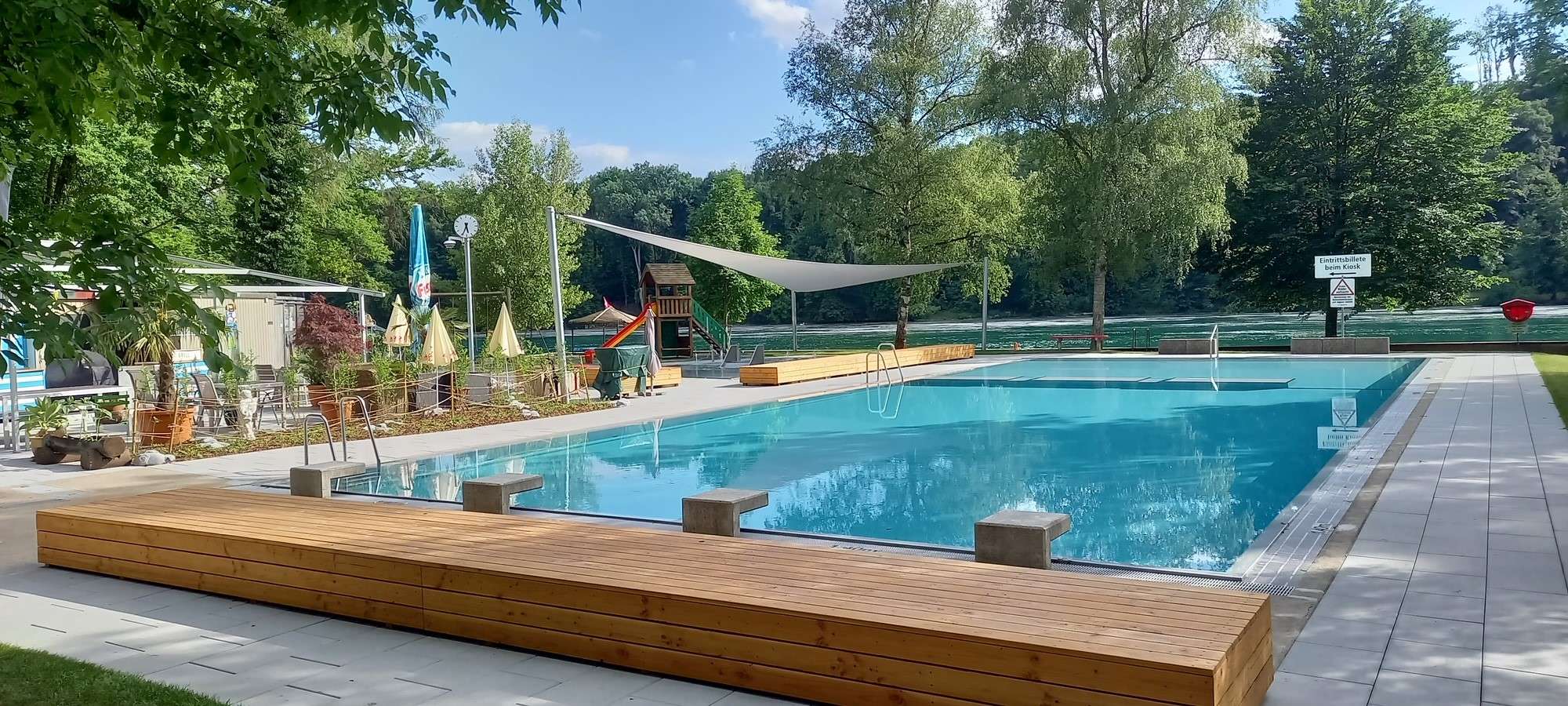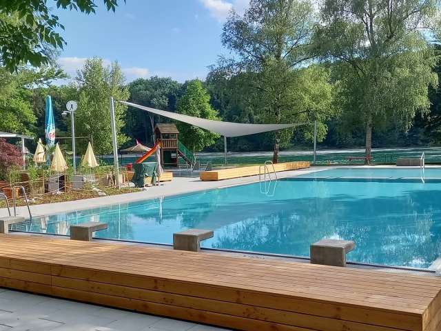 River pool on the Rhine in a quiet location in the forest with additional swimming and paddling pools.