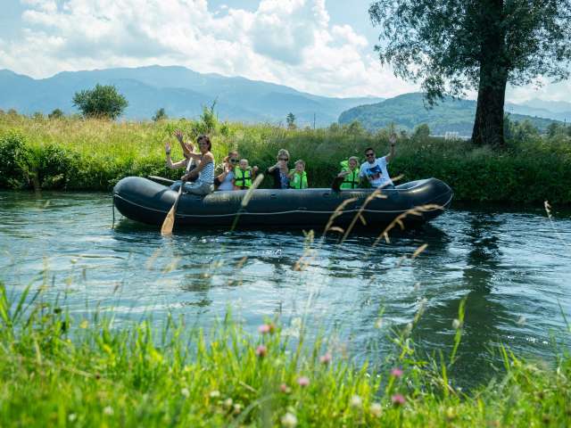 Only the starting point of the journey becomes an experience: kangaroos, cows, chickens, dogs and many other animals greet the guests at the Steigmatt adventure farm in Montlingen. From there you take over the paddle and start the comfortable boat trip on the Rhine Valley inland canal. Due to the weak current in the canal and low water depth the boat tour is suitable for all age groups. During the trip you can have a picnic break on the shore at any time.