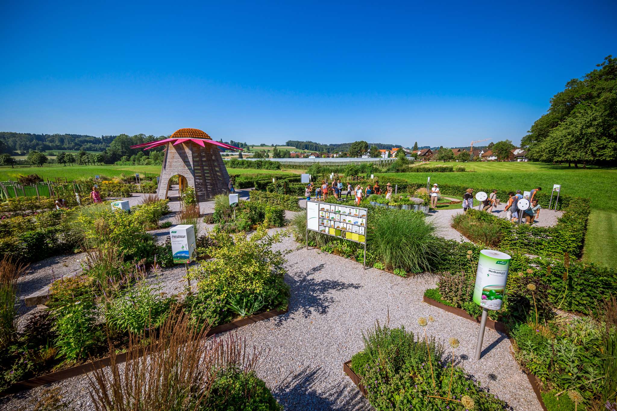 The Echinapoint experience centre in Roggwil is the mouthpiece of A. Vogel AG in Roggwil, a traditional manufacturer of organic natural remedies. The history of naturopathy can be experienced here. In the herb garden, which is laid out like a flower, visitors can explore with all their senses the production and mode of action of herbal medicines as well as the life and work of naturopathy pioneer Alfred Vogel. Guests learn how to maintain their personal health in a natural way or what a healthy, wholesome diet looks like. Incidentally, the name EchinaPoint comes from Alfred Vogel's favourite plant Echinacea, the red coneflower. He brought this plant back to Switzerland from a trip to America in the 1950s. Echinacea is still used today to strengthen the immune system, among other things. The adventure centre is open daily and admission is free. Guided tours for groups are available by prior arrangement.