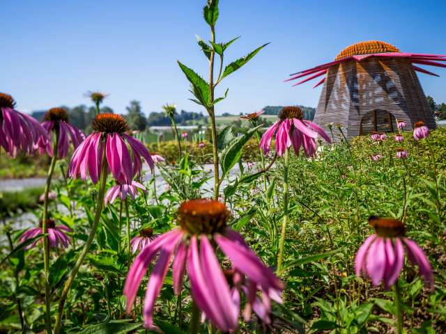 The Echinapoint experience centre in Roggwil allows visitors to immerse themselves in the world of naturopathy. How does the medicinal plant get into the bottle? Who was Alfred Vogel? How does the red coneflower, echinacea, work? Visitors can find the answers in the large adventure herb garden in Roggwil.