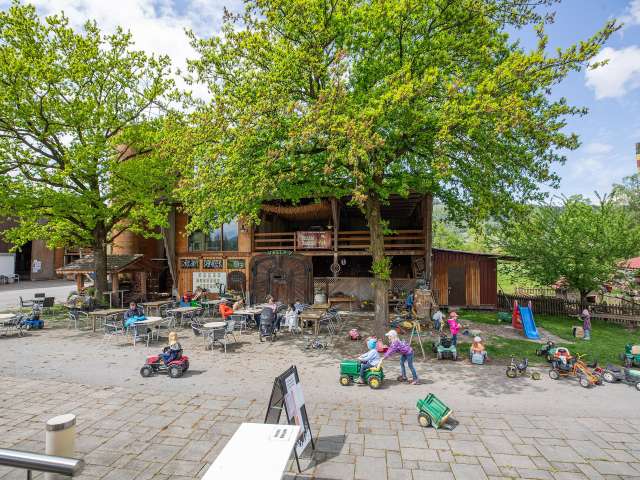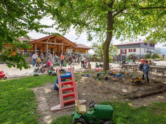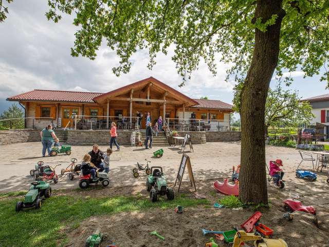 The Eichhof offers an experience for young and old. Various animals such as cows, goats, rabbits, chickens, ducks, peacocks can be admired. In addition to the animal attraction awaits the children countless play tractors and a large sandbox.