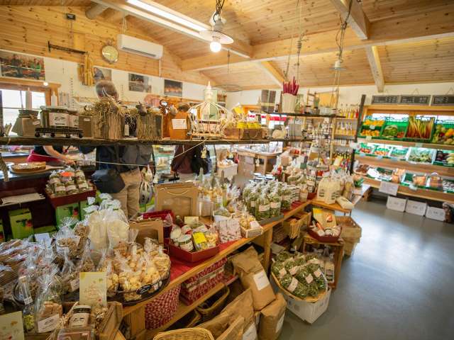 The farm store and the farm café were built in 2011. The focus of the assortment is on the farm's own meat and wine.