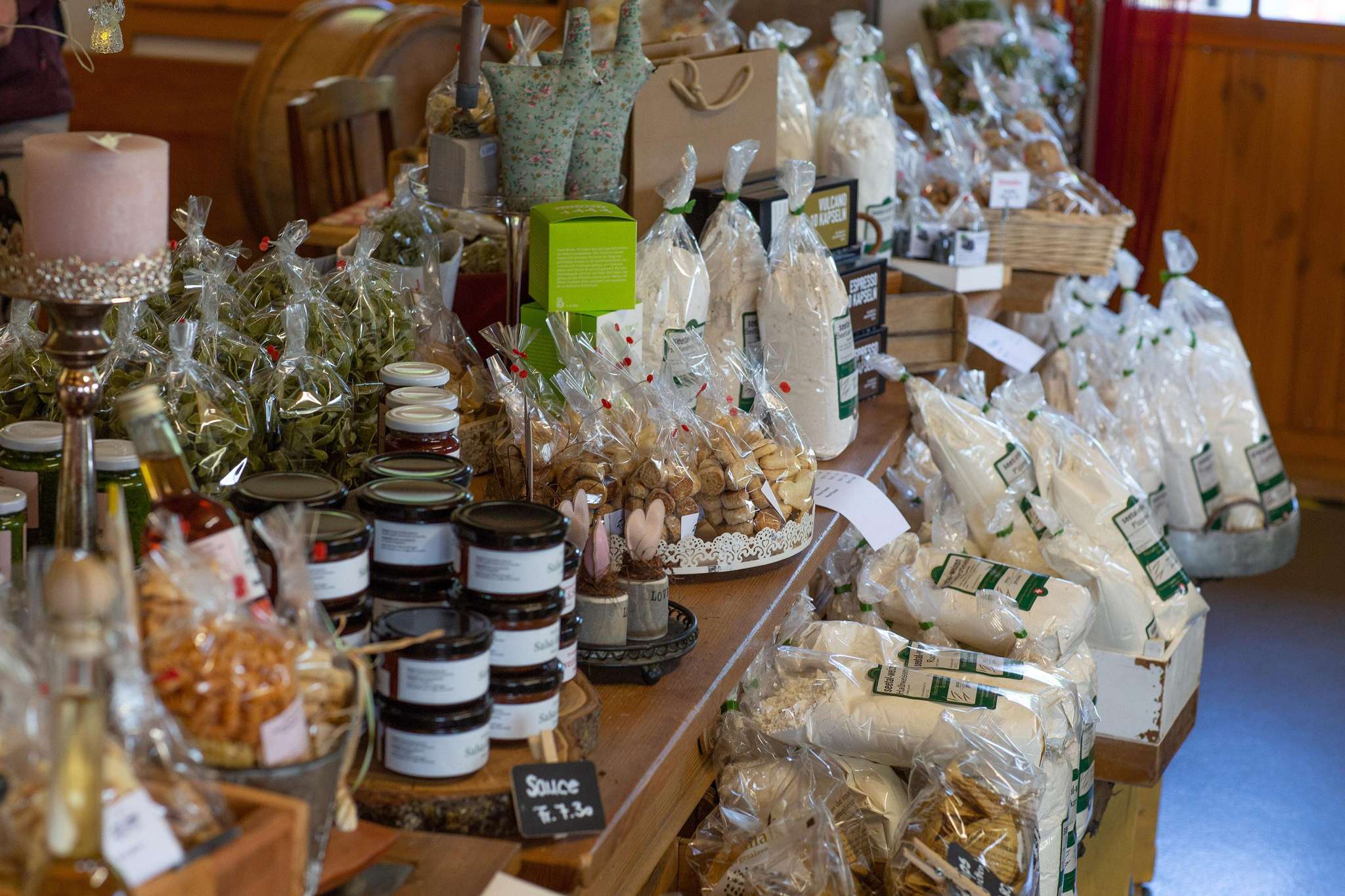 The wide range of products consists mostly of own products, including pastries, jams, preserves and much more. In addition, some products such as fresh vegetables and fruits, dairy products or flour are purchased from farmers and suppliers in the region.