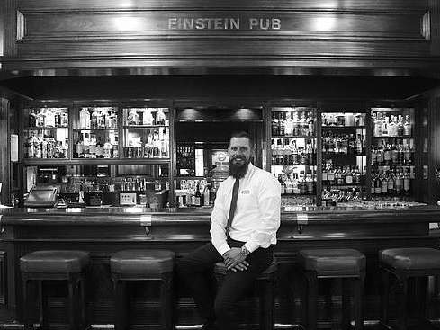 description for the atmosphere that prevails in the Einstein Bar. People from St.Gallen and all over the world meet here.