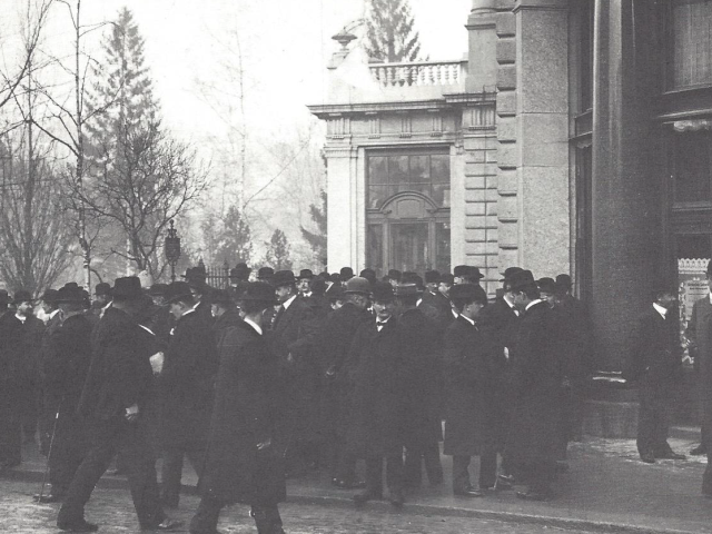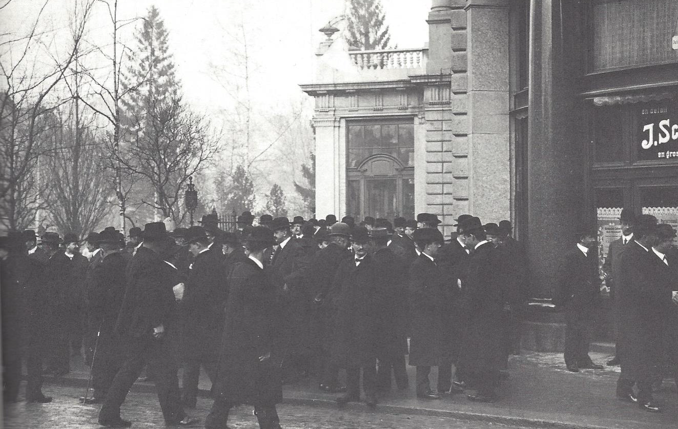 The threads of successful textile business activity came together in the embroidery exchange. Every Wednesday and Saturday, manufacturers and merchants, embroiderers and finishers met and exchanged information about the market situation and fashion trends, orders and ownership rights to goods. The building was nicknamed the “Schwarzbörse” and “Schwatzbörse” because of the clothes worn by the merchants and the lively verbal exchanges.