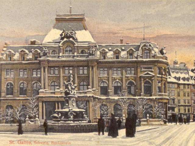 The head office of “Union Bank of Switzerland” and the embroidery market was constructed between 1889 and 1891. Unlike most other commercial sites of the embroidery period it wasn’t built on green land but on the ground of the medieval historic district of St.Gallen.