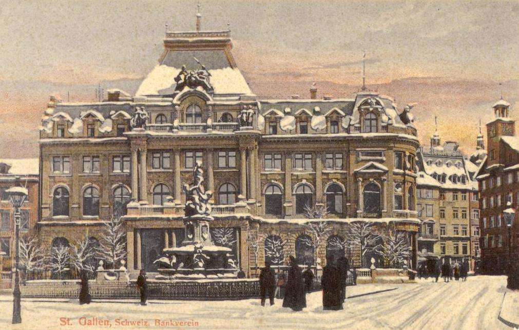 The “Schweizerische Unionbank” was also located in the building. In 1896, it merged with the “Basler Bankverein” and the “Zürcher Bankverein” to form the “Schweizerischer Bankverein”. This merged with Union Bank of Switzerland in 1998 to form UBS Group AG (Union Bank of Switzerland), which had its branch in the building until 2021.