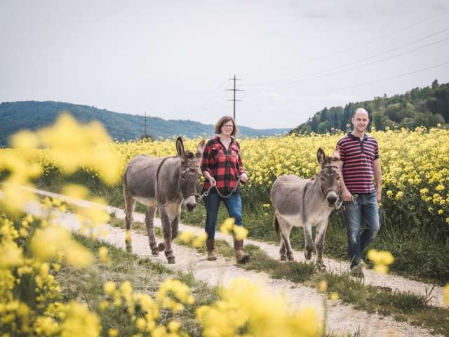 On our small donkey farm we enable our guests to be together with our donkeys and small animals in a family atmosphere and create enriching encounters in many ways.