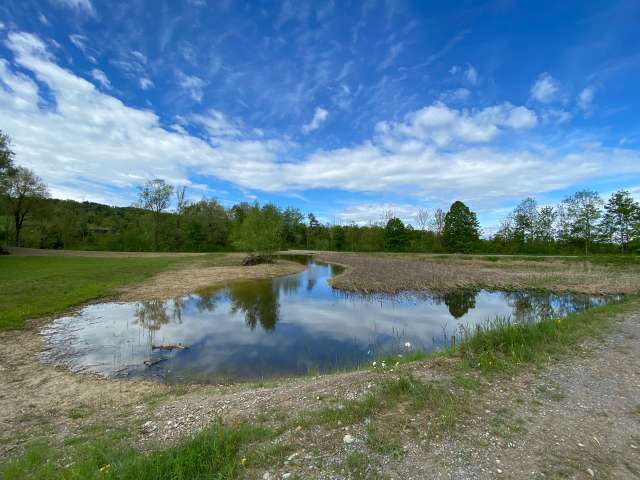 The protected area "Former Espel Gravel Pit" is located on the municipal territory of the town of Gossau, close to the border with the neighboring municipality of Flawil. It lies on a gravel terrace deposited by ice-age melt waters between the present-day Glatt in the west and the Gossau village stream in the north. The area originated from a former gravel pit and was placed under protection in 1980. It has significant amphibian occurrences and is an amphibian spawning area of national importance (No. SG 600). In 2018, the city of Gossau handed over the 5.5 ha parcel to Pro Natura. As the succession had progressed far into forestry, Pro Natura had a new maintenance and development concept drawn up. The first new spawning waters were already created in 2019. In 2020/21, further enhancement measures were implemented and the protected area was marked according to a newly developed visitor guidance concept. The nature reserve is maintained by a group of volunteers in cooperation with a farmer.