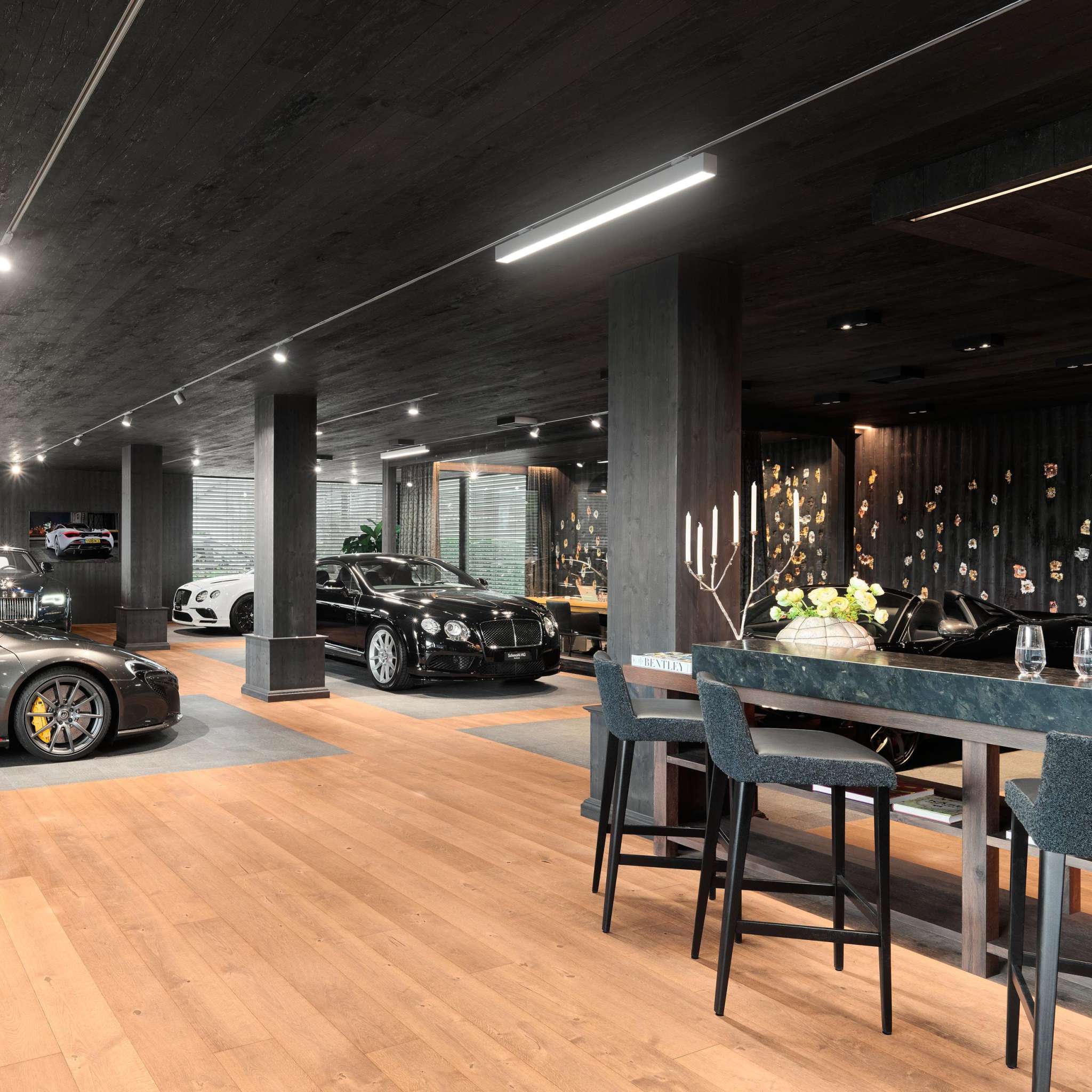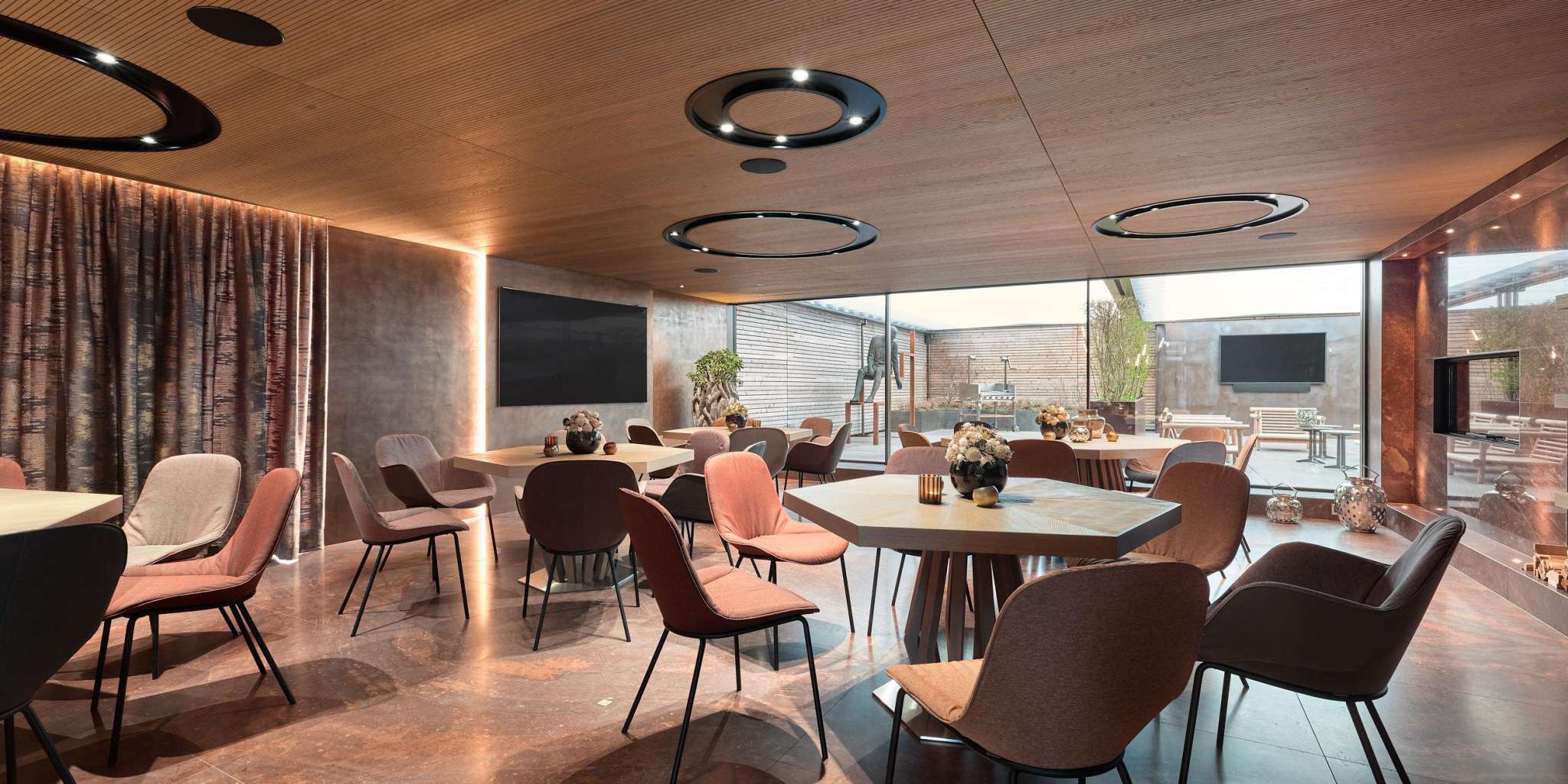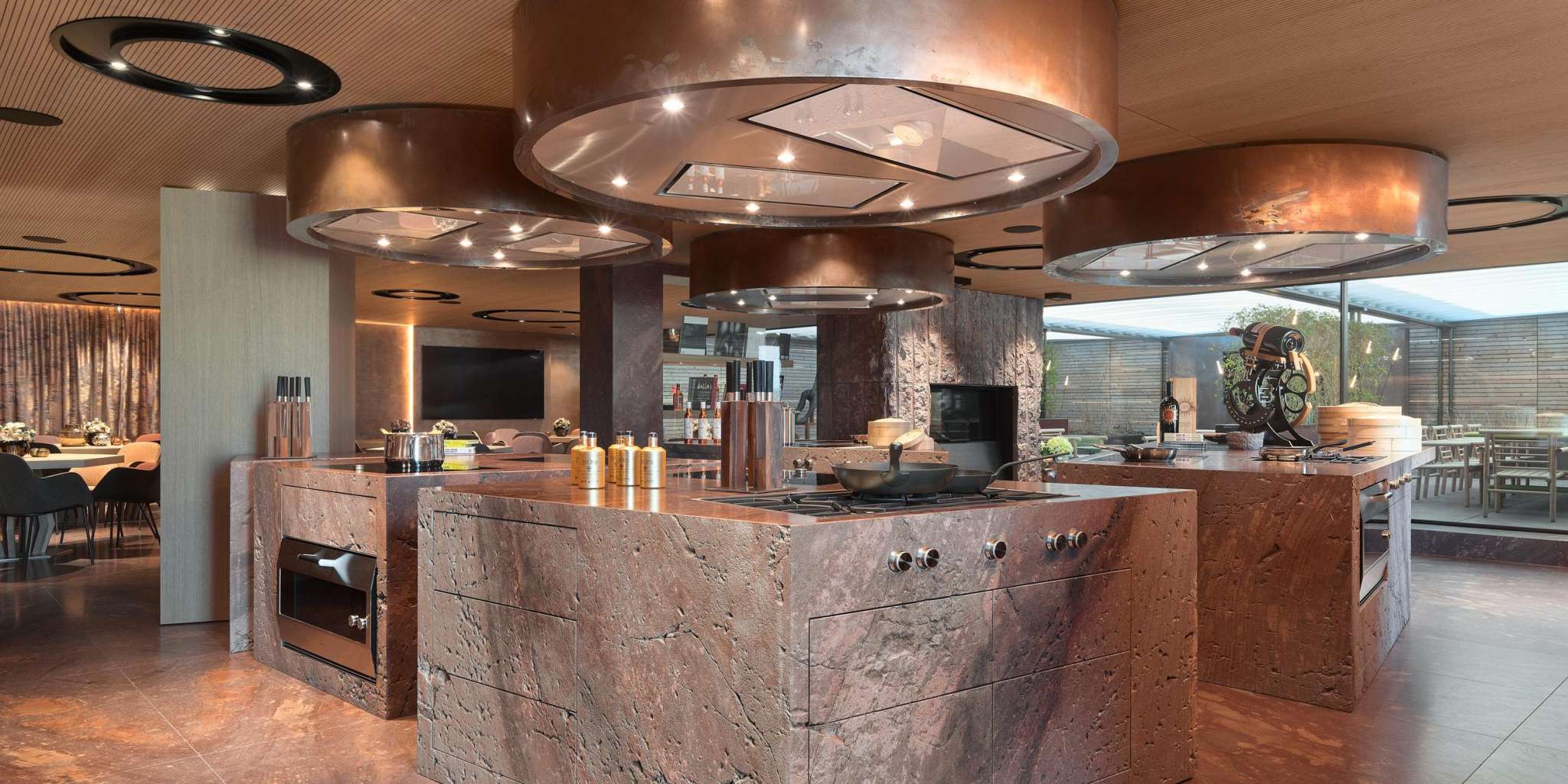 Wedding, birthday or corporate event - the Plan und Werke rooms are the place to celebrate, cook and meet. The rooms captivate with an exclusive ambience, the finest materials and modern technology. Four state-of-the-art kitchen worlds are available for cooking courses and events. Highlights are the spectacular wine tower with over 1500 top wines from all over the world and the 130 sqm terrace with lounge, bar, open space and closable roof. Two 150-square-metre show flats are particularly suitable for meetings that feel like home. The in-house chef fulfils every culinary wish and places great value on regional and seasonal products.