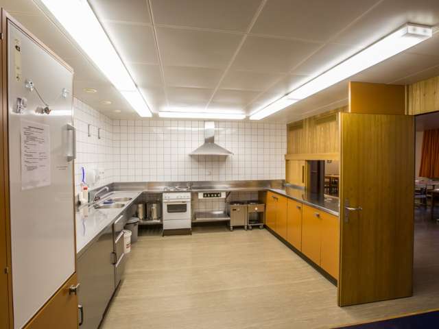 The family and youth center offers its guests a total of 79 beds on two floors. From the familiar 5-person dormitory to the 12-person dormitory for groups, there is something for every number of people. The offer is completed by two single and two double rooms, as well as two kitchens with a lounge for self-catering.