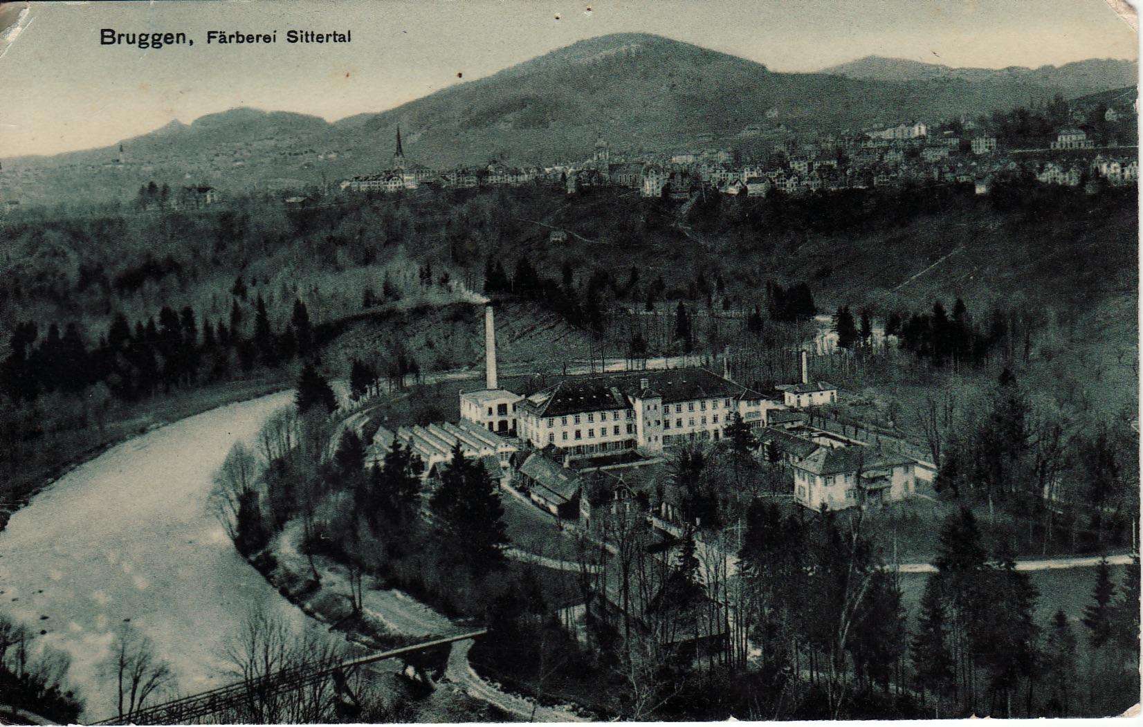 The first enterprise in the Sittertal was a failure: Friedrich Züblin's flax spinning mill, built in 1840, had focused on the past instead of the future of cotton by turning to canvas production. In 1866, Otto Rittmeyer set up a machine embroidery shop in the buildings, which was in operation until 1890. The factories then stood empty until 1904, when Johann Haeni-Merhart, owner of Waldegg Castle and the textile operations at Burgweiher near Schönenwegen, took over the facilities in the Sittertal. He had a new bleaching plant built with a transmission porch, boiler house and high chimney (architect: Josef Kinast). This gave rise to the Sitterthal dye works.