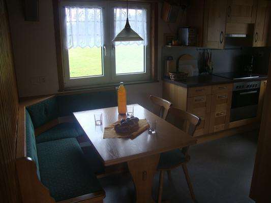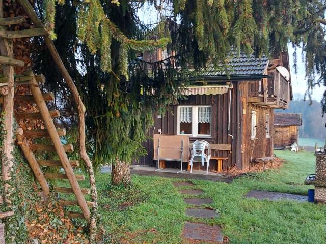 The holiday cottage is located slightly away from the farm buildings with a view of the pastures and riverside woods of the Sitter. In addition to beautiful views, the river also offers a bathing beach and barbecue facilities just a ten-minute walk from the holiday home. The two-storey accommodation offers space for six people (4 adults, 2 children) with an eat-in kitchen, two bedrooms and a living room with two beds. The seating area with fireplace, a balcony and a playground provide plenty of outdoor fun in the fresh air. The farm animals look forward to visits and petting. Various hiking and cycling trails run nearby. The Hudelmoos, the Sitter ferry and the Hauptwil ponds invite you to discover nature or enjoy a swim. Lake Constance, the city of St. Gallen and the hiking area of the Alpstein mountains are also just a 20 to 30-minute drive away. Dogs are welcome.