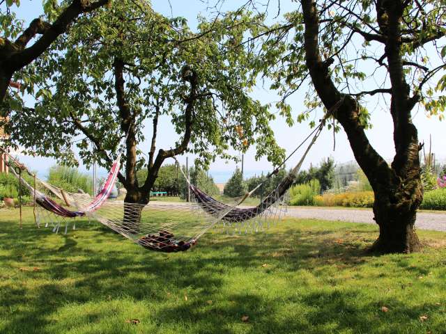 The Feierlenhof Altnau is situated high above Lake Constance in the midst of green country idyll. On the active fruit farm, guests enjoy the picturesque view of the lake and fine food from the farm shop. The Feierlenhof is the perfect place for farm holidays or parties surrounded by apple groves.