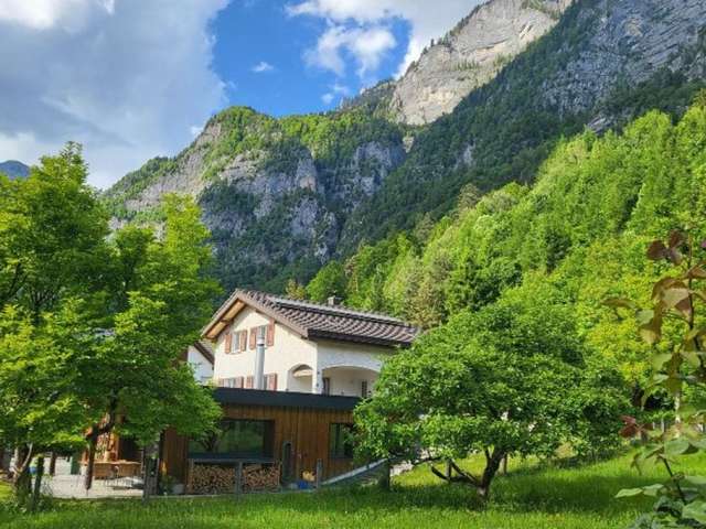 The 3.5-room bungalow is located in Berschis in the centre of the village, with a beautiful view of the mountains.