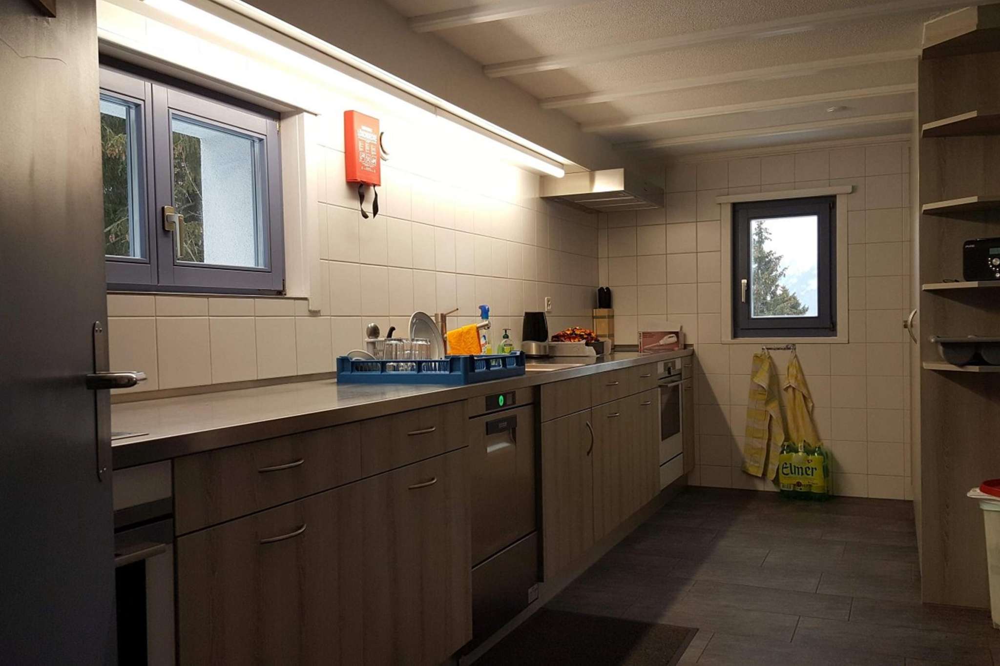 Easy to reach by car, delivering material is no problem. We have our own parking spaces. The kitchen in the SKD ski house has been completely renovated. A new dishwashing machine has also been installed, which is available to the tenants.