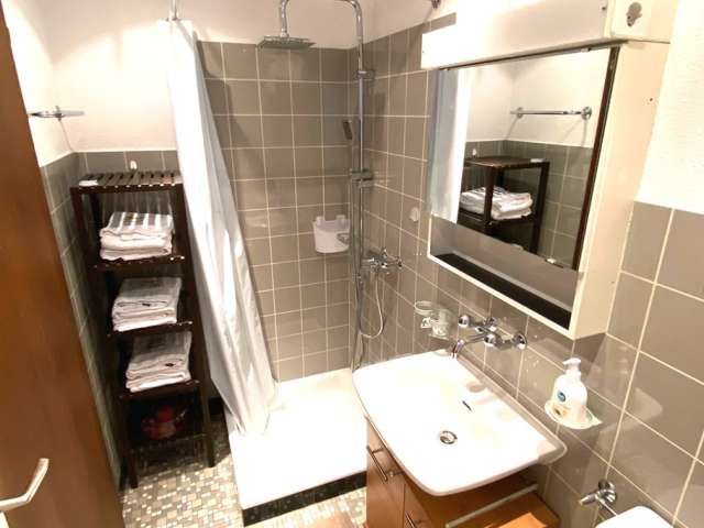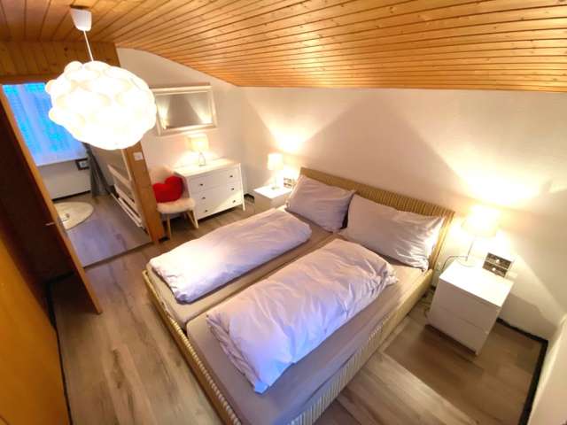 The apartment is very cozy and comfortably furnished. The living and bedrooms have a wooden floor. The large balcony offers a beautiful panoramic view on the mountains.