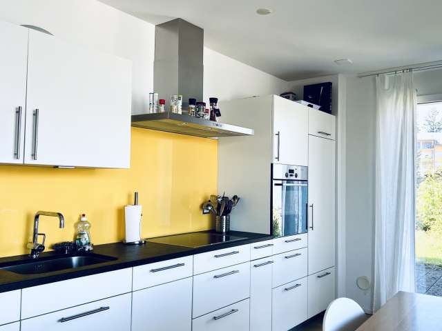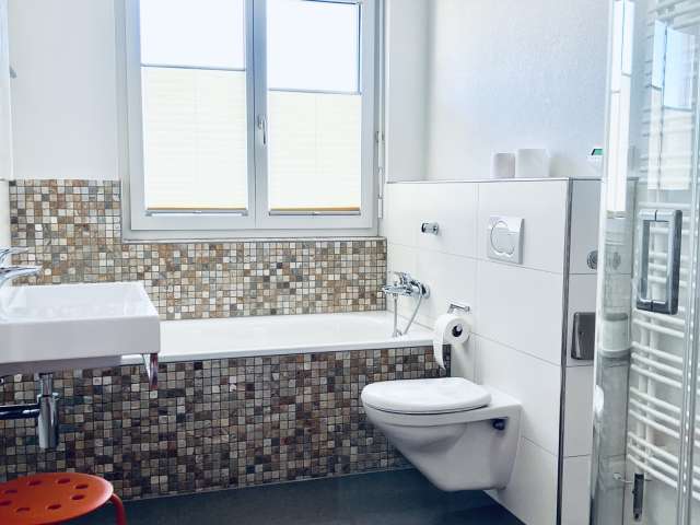 The apartment is very bright, modern and comfortably furnished. The living room and bedrooms have a beautiful wooden floor. The apartment has 2 terraces.