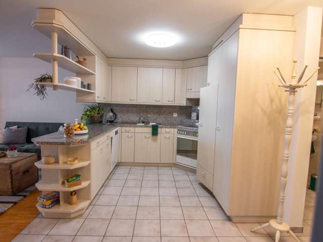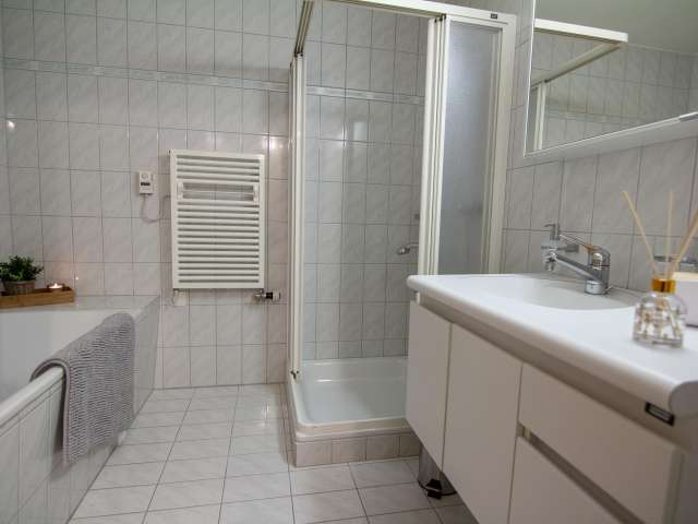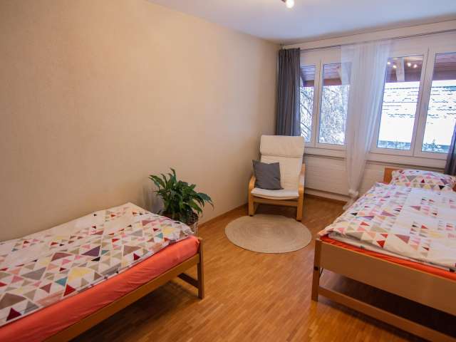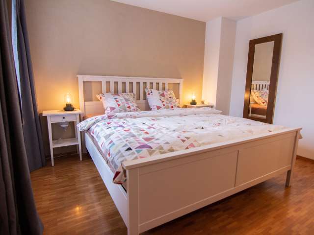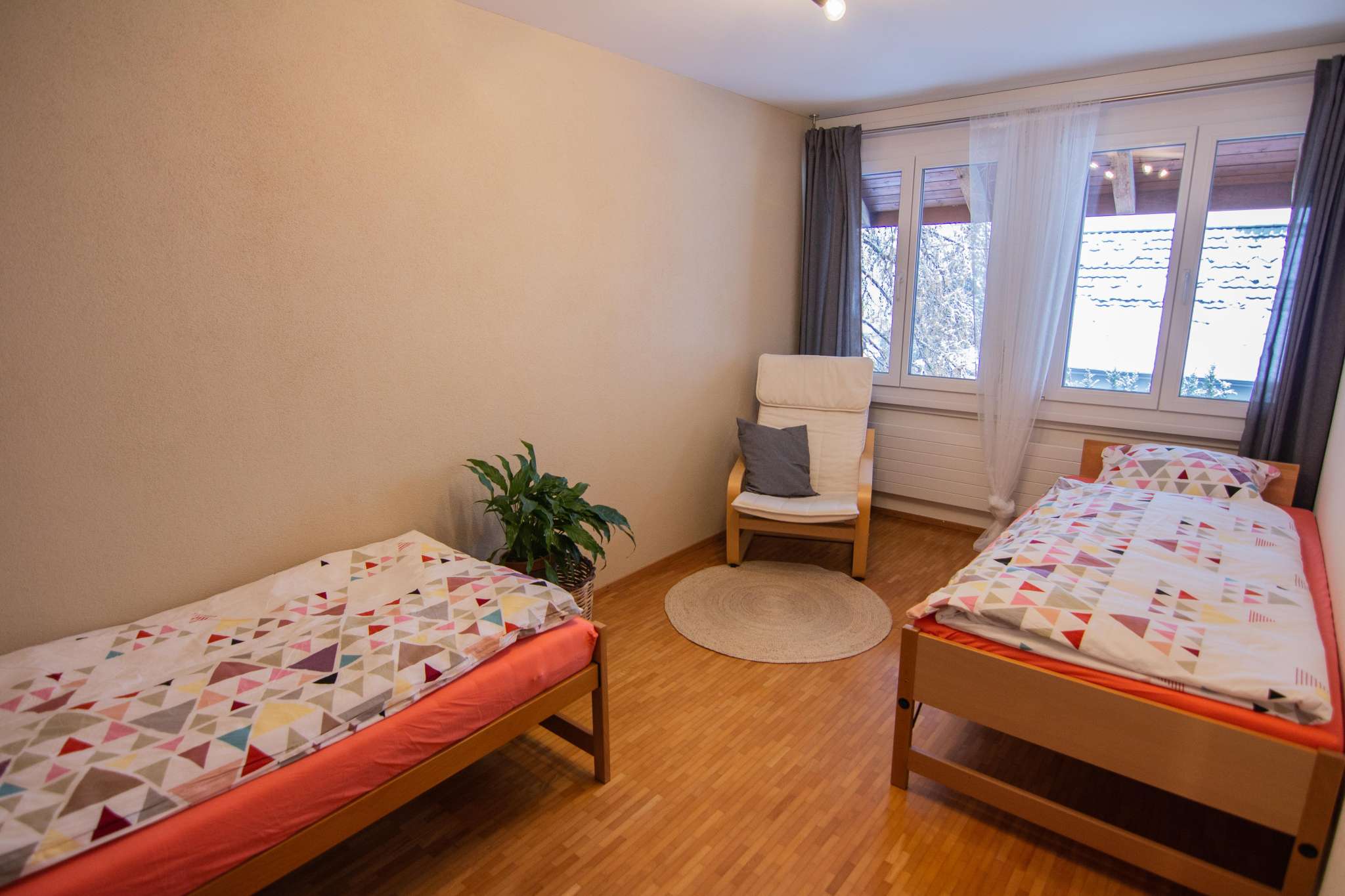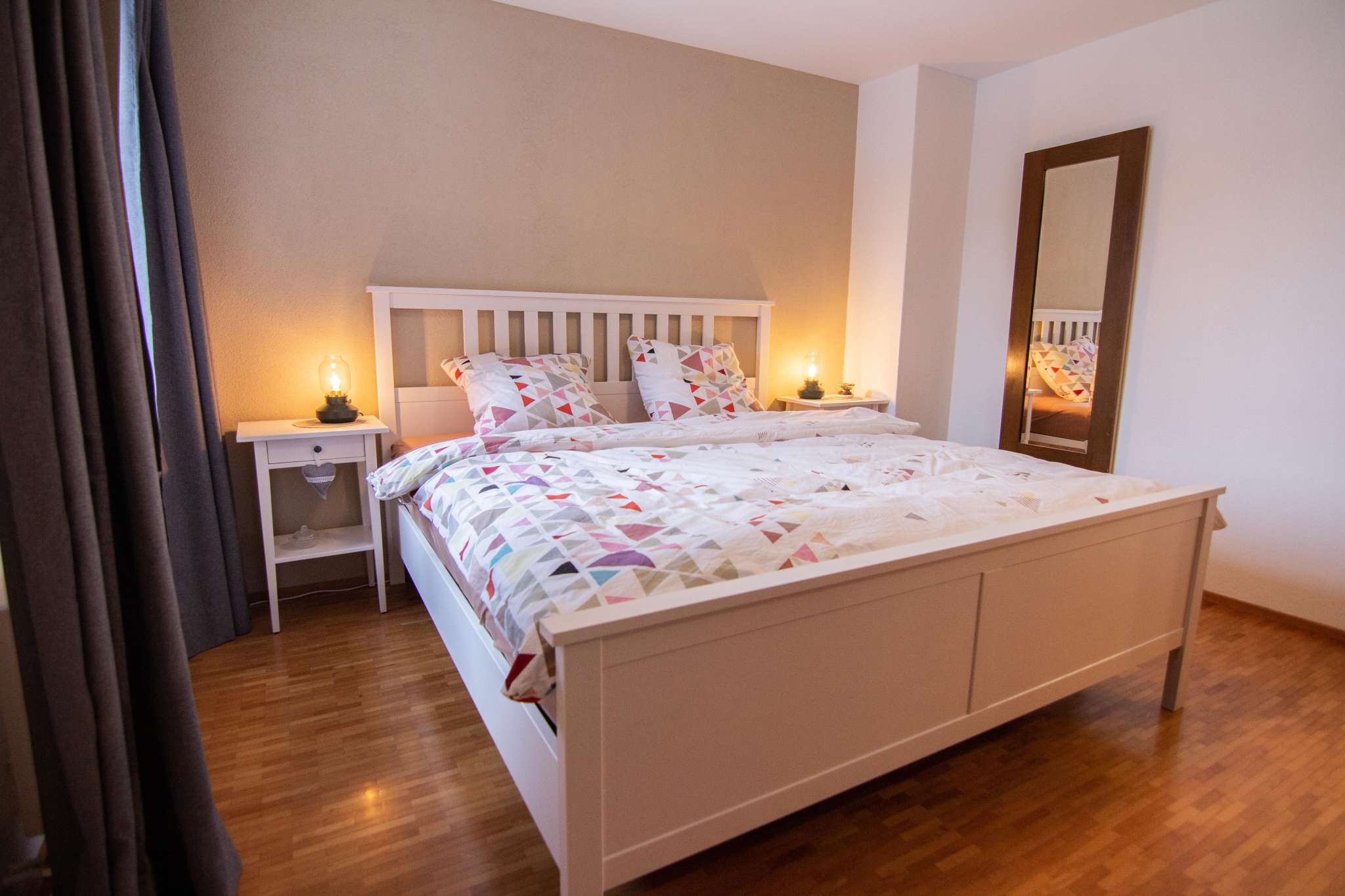 The three-room flat is equipped with a kitchen, a separate WC, a bathroom with shower and bathtub, two bedrooms, one with a double bed and one with two single beds, and invites you to relax and enjoy yourself. (Maximum occupancy: 5 persons)