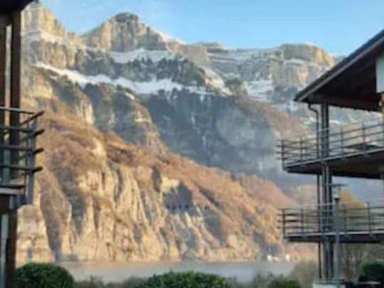 The holiday apartment Resort Walensee No. 73 offers a 3.5-room apartment with 130 sqm and a terrace directly on Lake Walen. Nearby are the Marina Walensee restaurant, a beach bar, and shopping facilities.