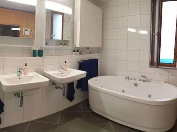 The 3.5-room apartment at Resort Walensee with 130m2 incl. terrace is located at the beautiful Walensee in the vacation region Heidiland. In only 2 minutes walking distance, you can reach the restaurant Marina Walensee, as well as the beach bar. To the jetty it is a 3-minute walk, enjoy a boat ride on the fjord-like Walensee below the Churfirsten chain. Shopping facilities are 5 minutes away on foot.