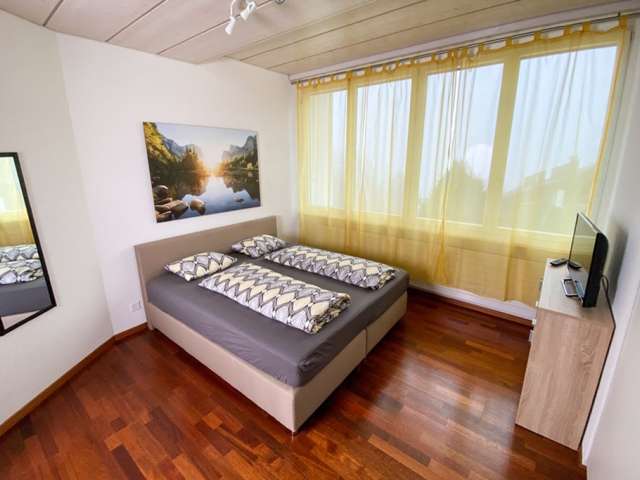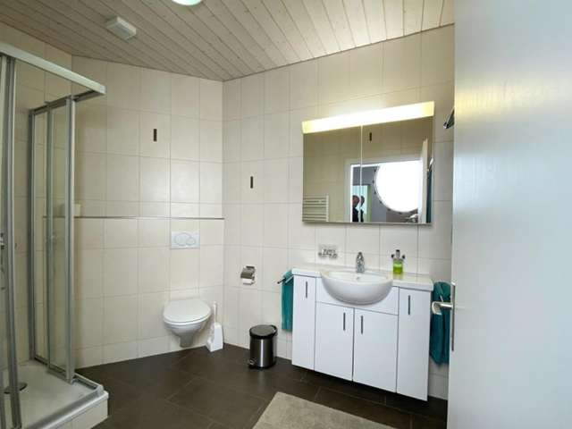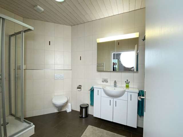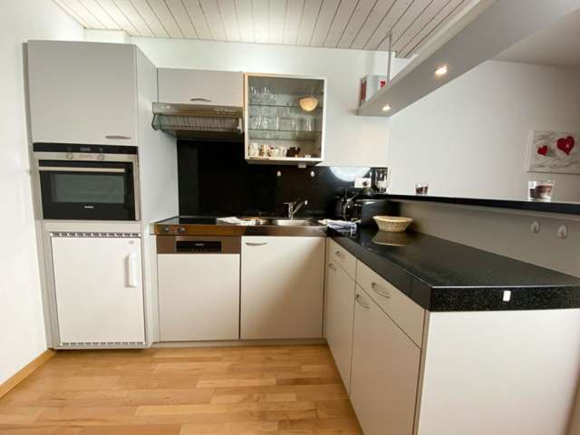 The modernly furnished accommodation provides a washing machine, as well as bed linen and towels.