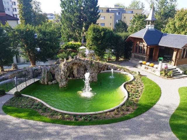 The "Lindengut" villa of the former textile industrialist Huldreich Ottiker has been both a residential and local history museum since 1989. With its surrounding park, water basin and tufa grotto, it bears witness to Flawil's textile past.