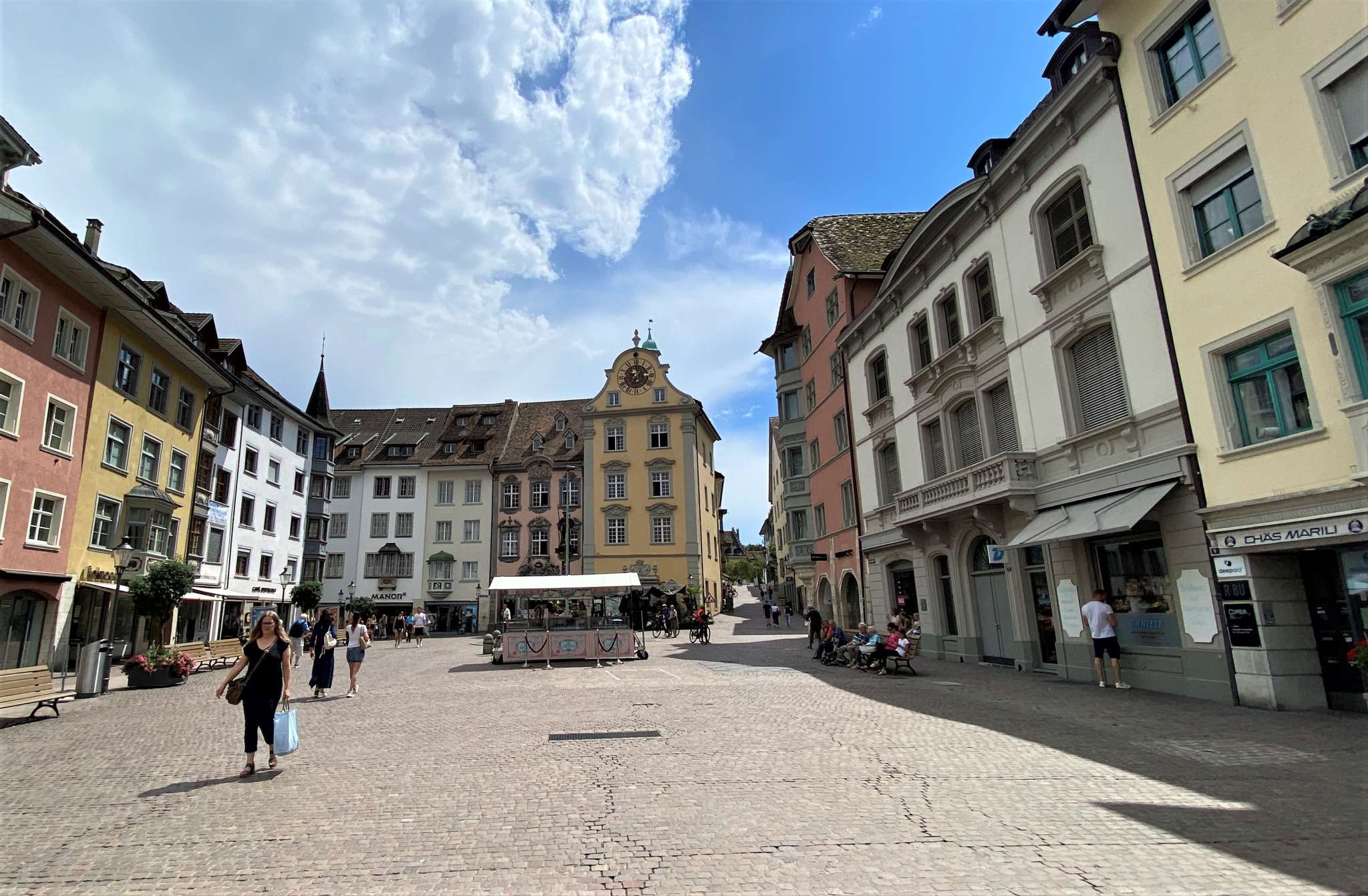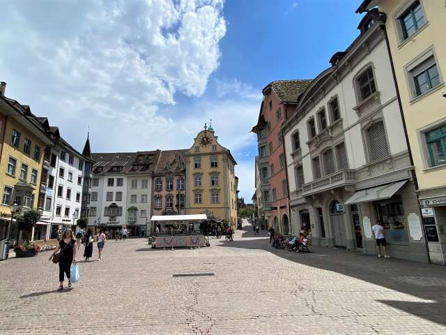 Today, the people of Schaffhausen meet there when shopping, for a little chat or to have a drink in one of the street cafés. Numerous speciality shops line the Fronwagplatz, which is closed to traffic.