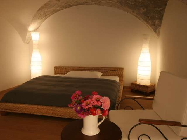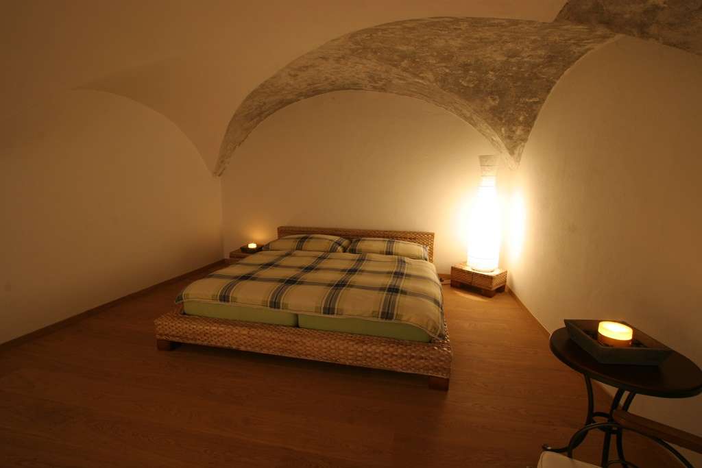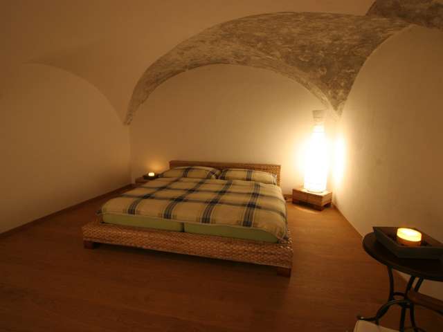 The Heidi romantic room in the Winery Cantunada, equipped with a magnificent double bed, can be found in a 300-year-old mansion in the middle of the town of Maienfeld. The vault gives the room a lot of charm and special character. The bathroom with shower/toilet is outside the room.